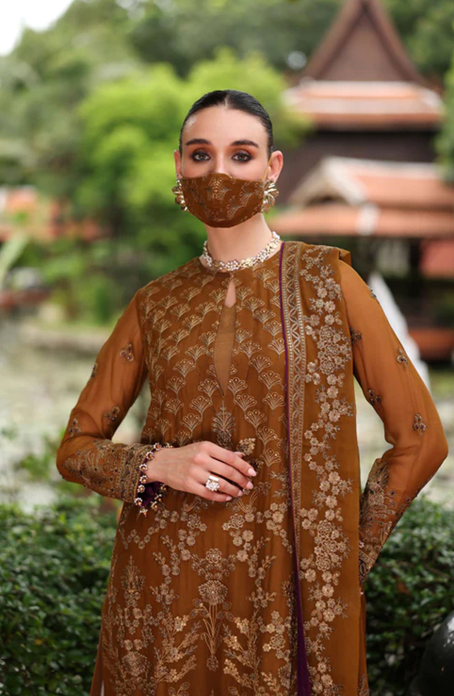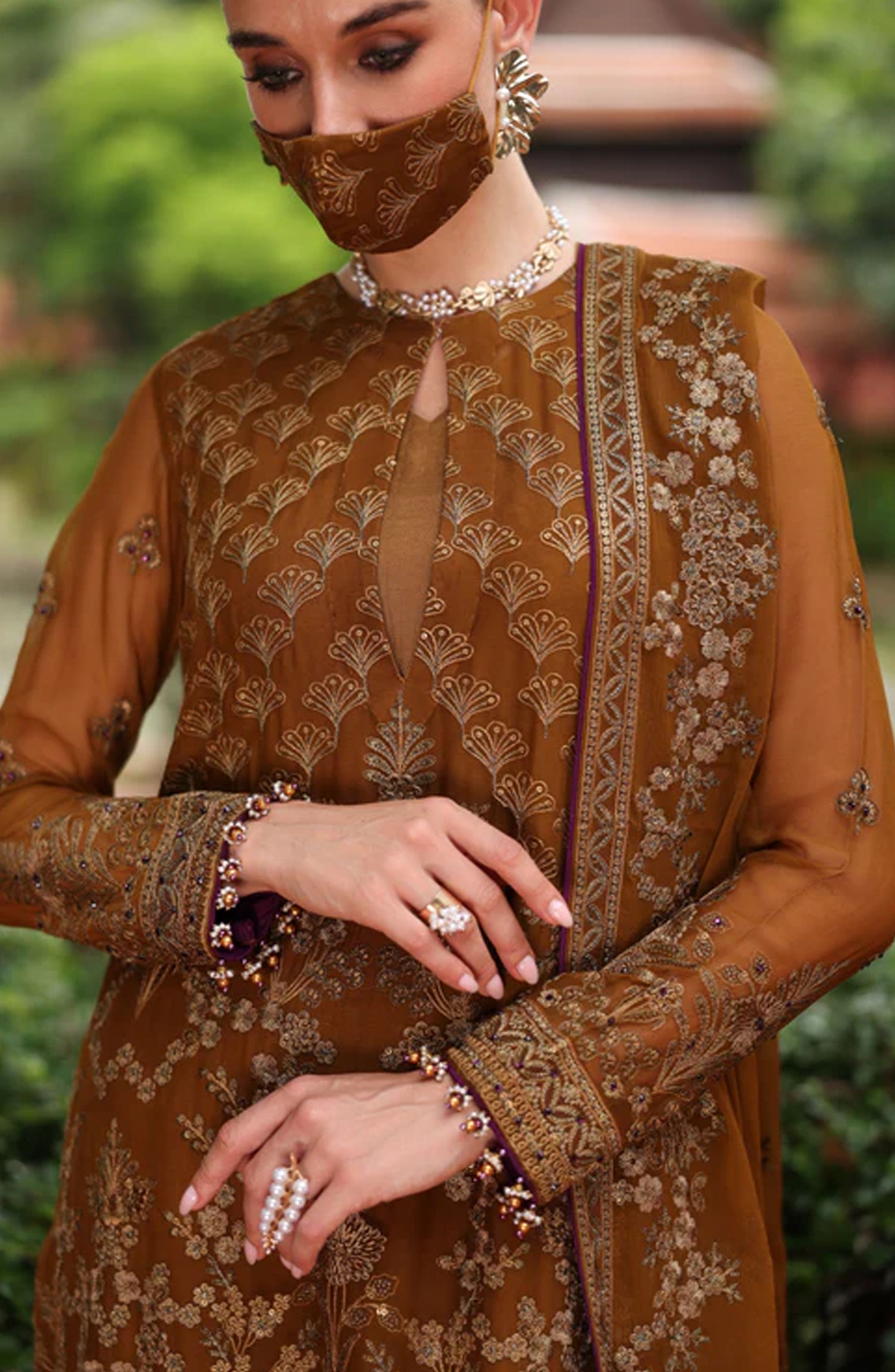 Flossie Naayab by Kuch Khas Embroidered Chiffon Unstitched 3 Piece Suit - K-103 - FLS25NKK - Brown - Festive Collection