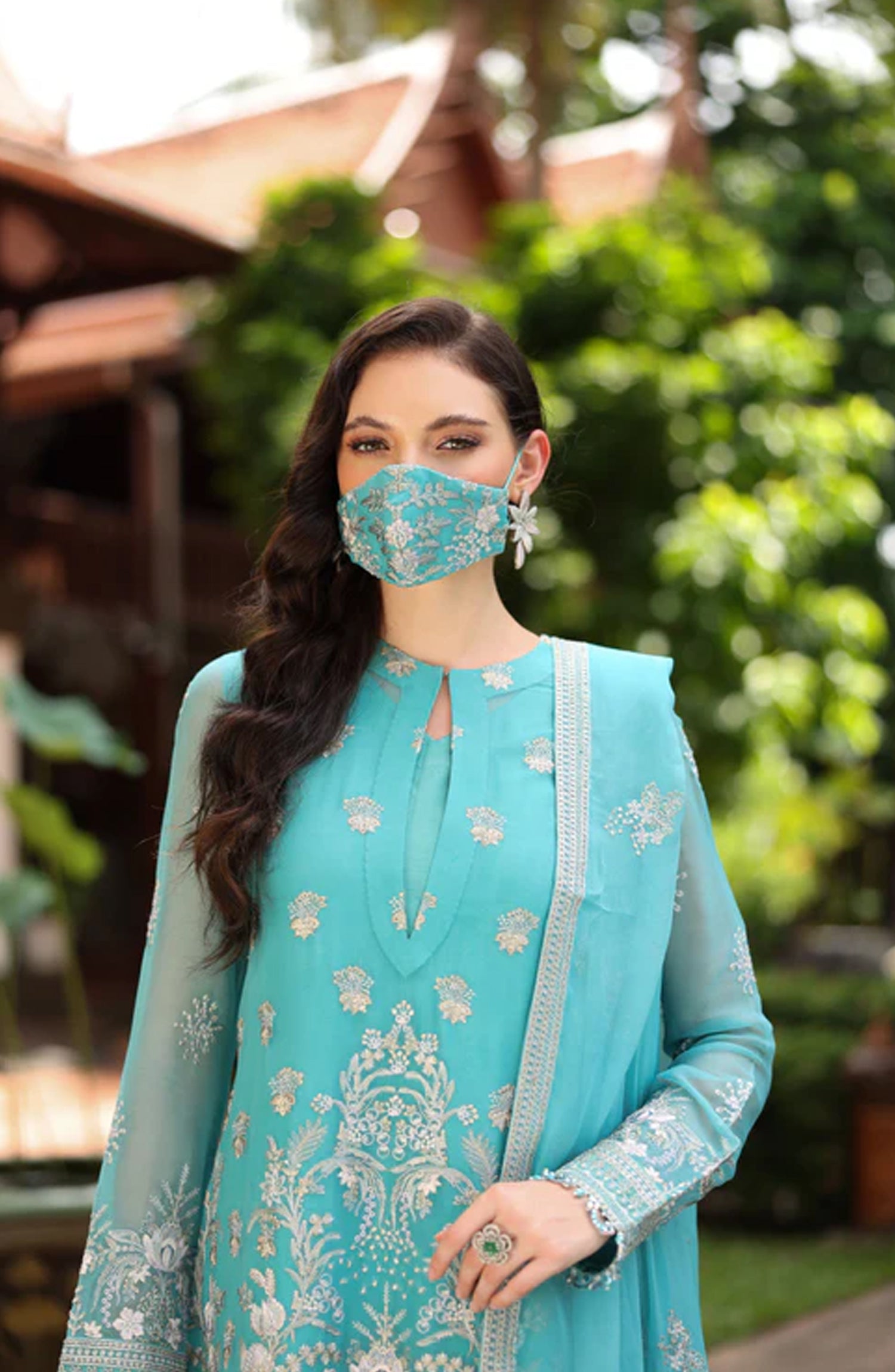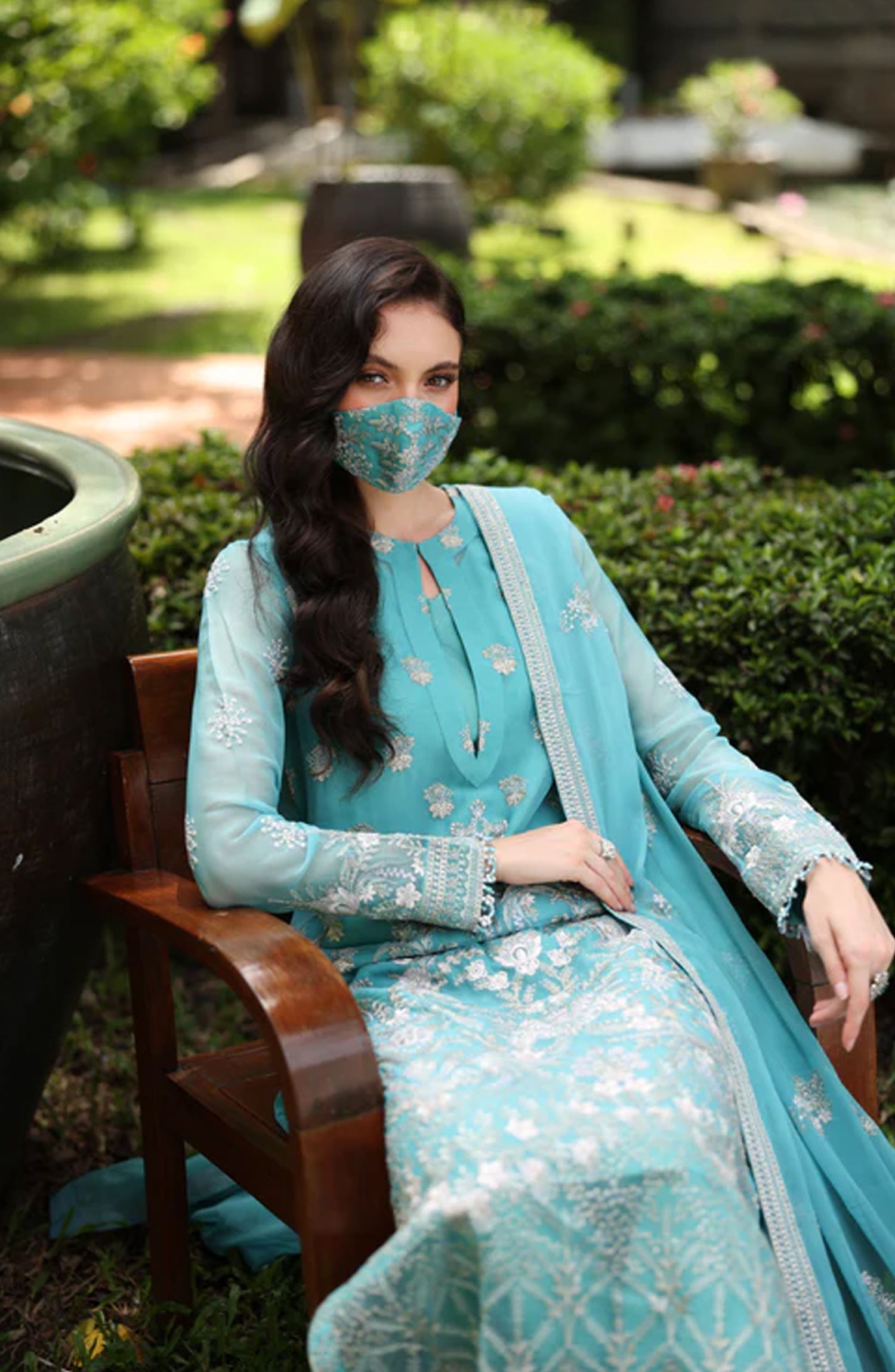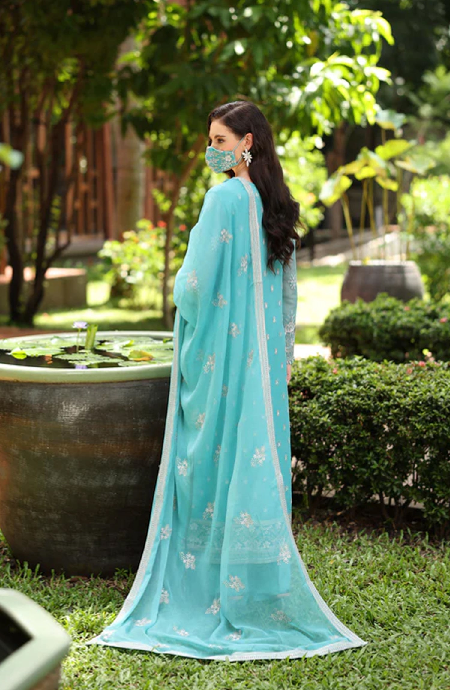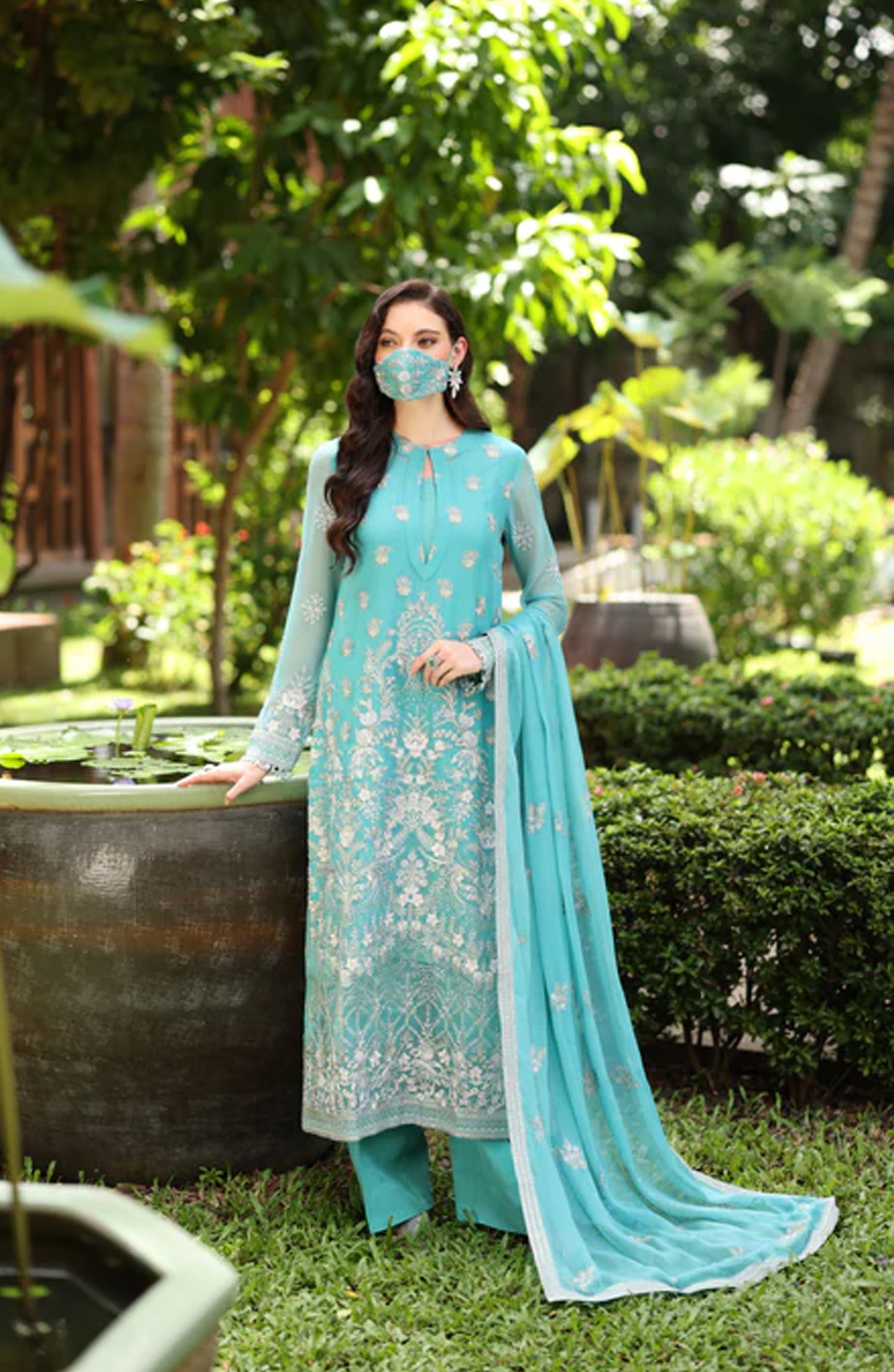 Flossie Naayab by Kuch Khas Embroidered Chiffon Unstitched 3 Piece Suit - K-104 - FLS25NKK - Blue - Festive Collection