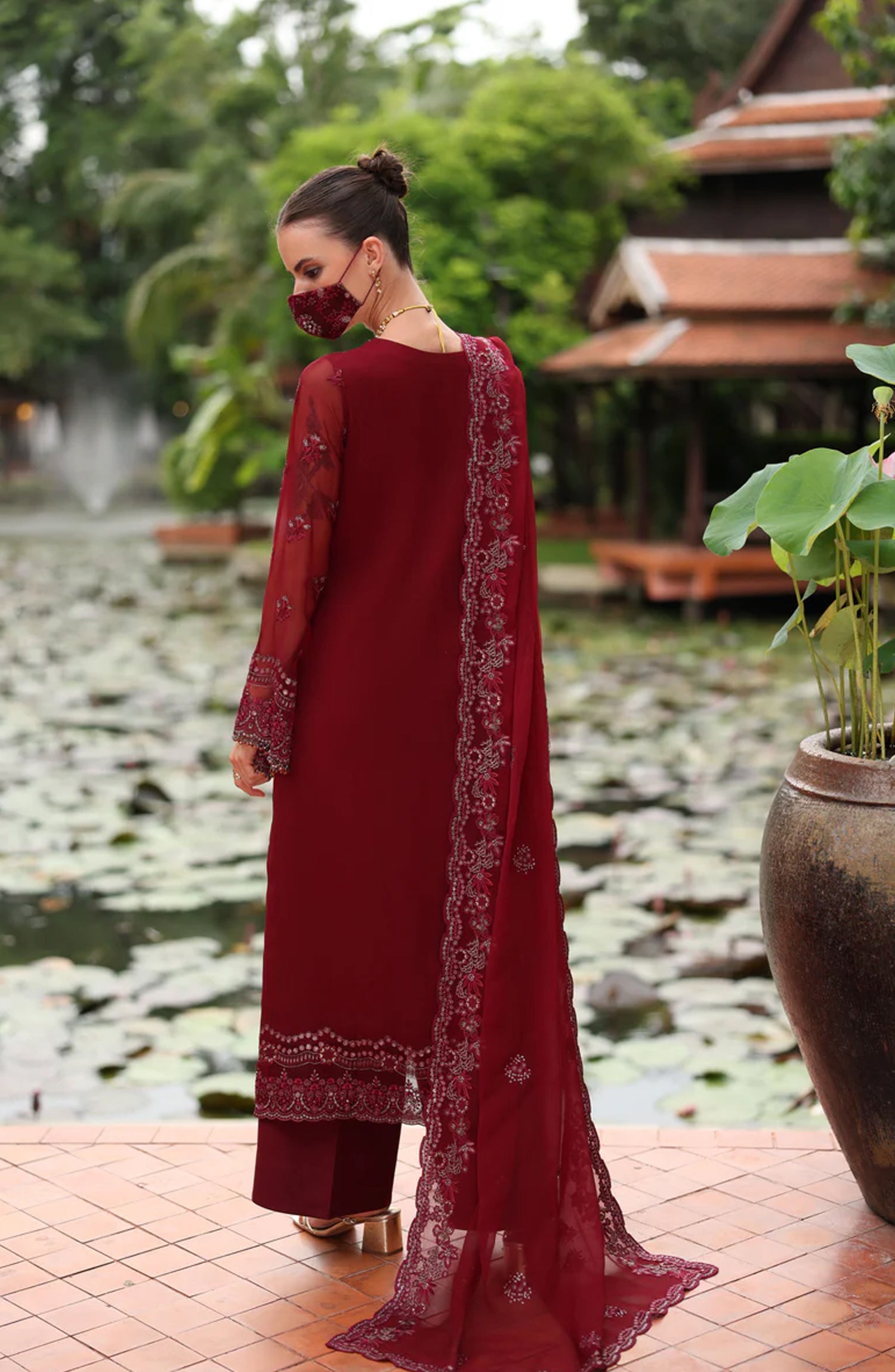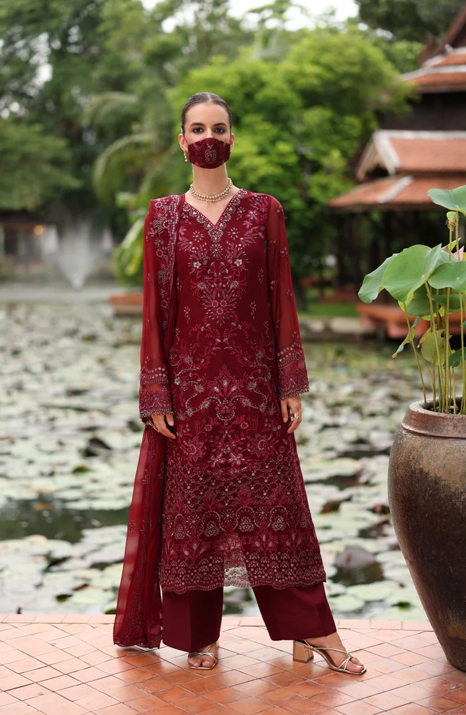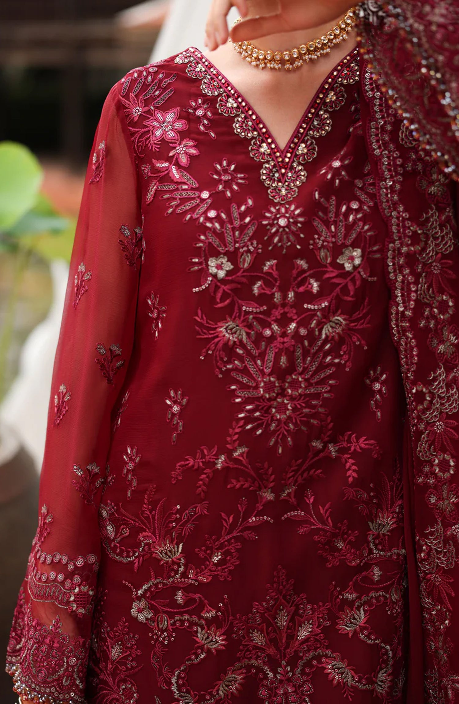Flossie Naayab by Kuch Khas Embroidered Chiffon Unstitched 3 Piece Suit - K-105 - FLS25NKK - Red - Festive Collection
