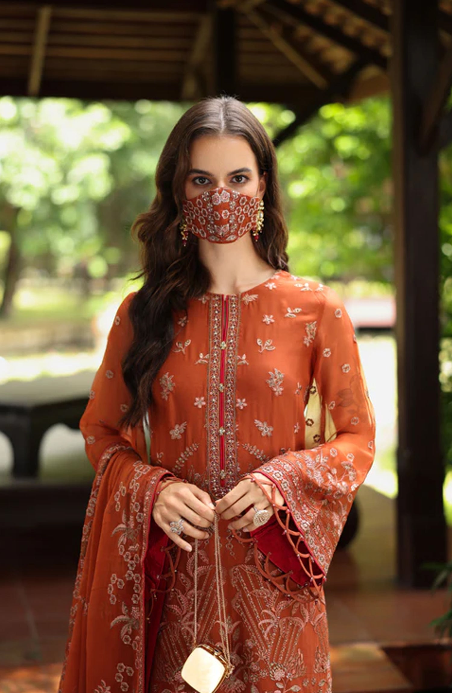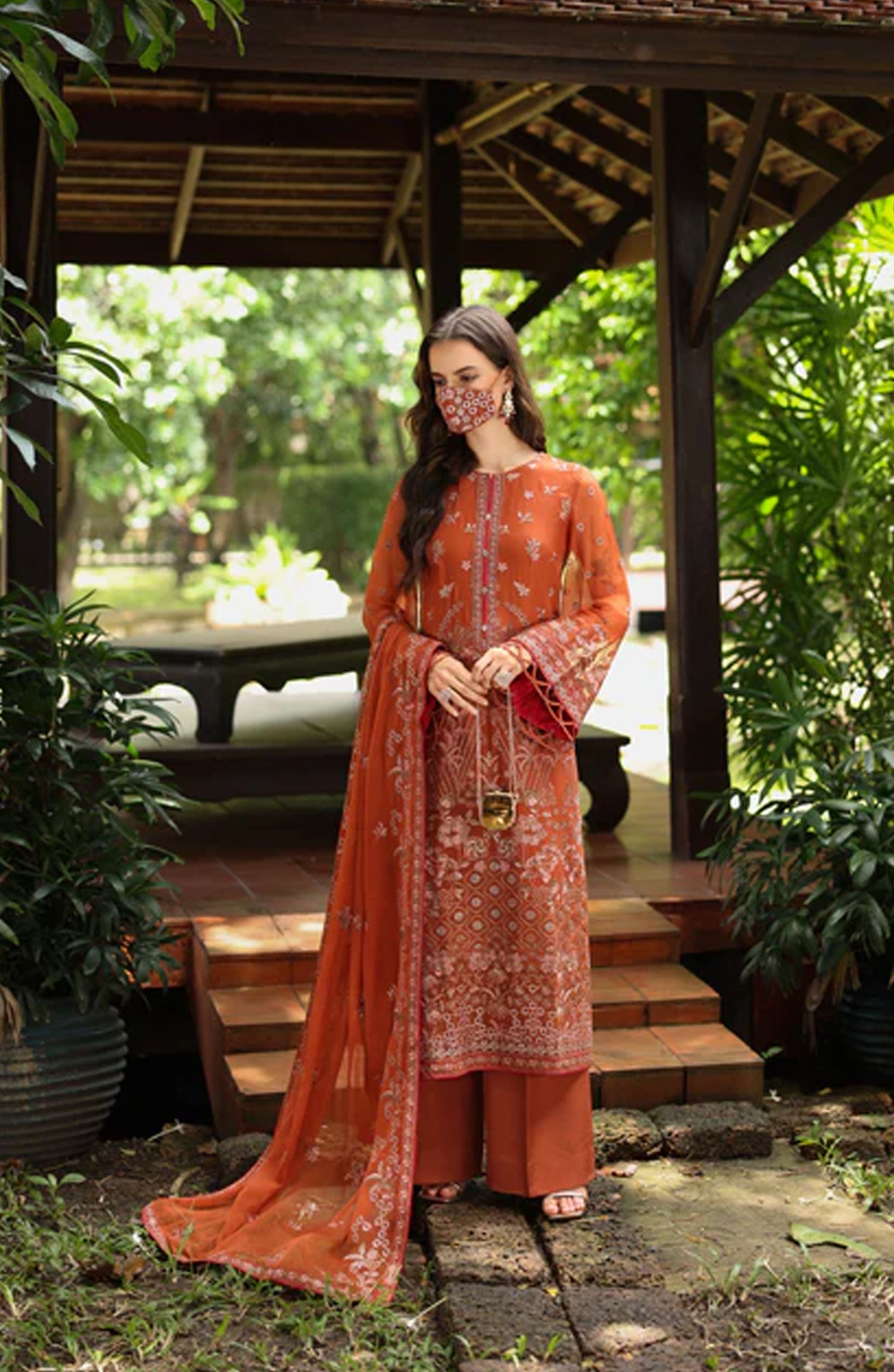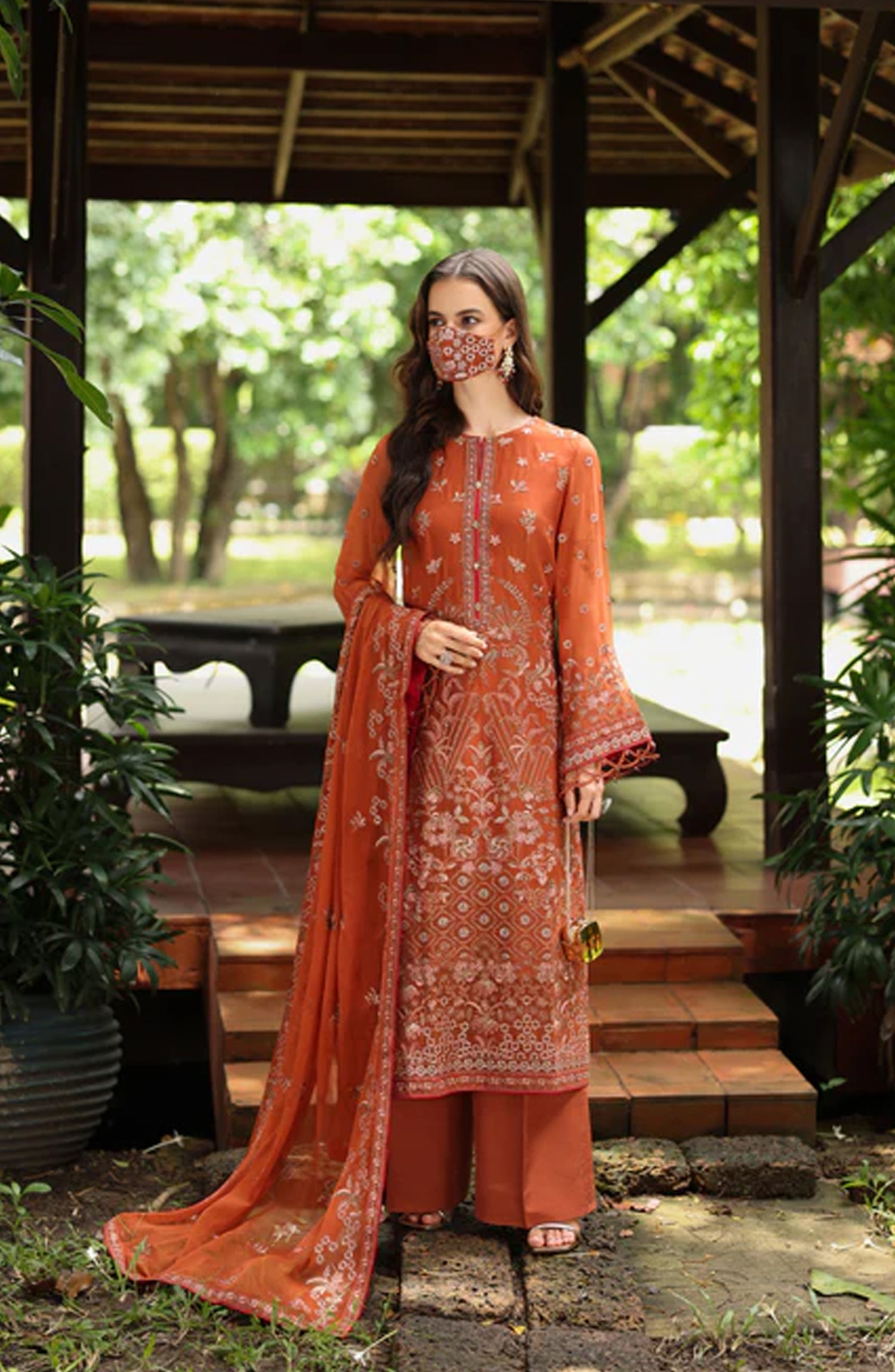 Flossie Naayab by Kuch Khas Embroidered Chiffon Unstitched 3 Piece Suit - K-109 - FLS25NKK - Orange - Festive Collection