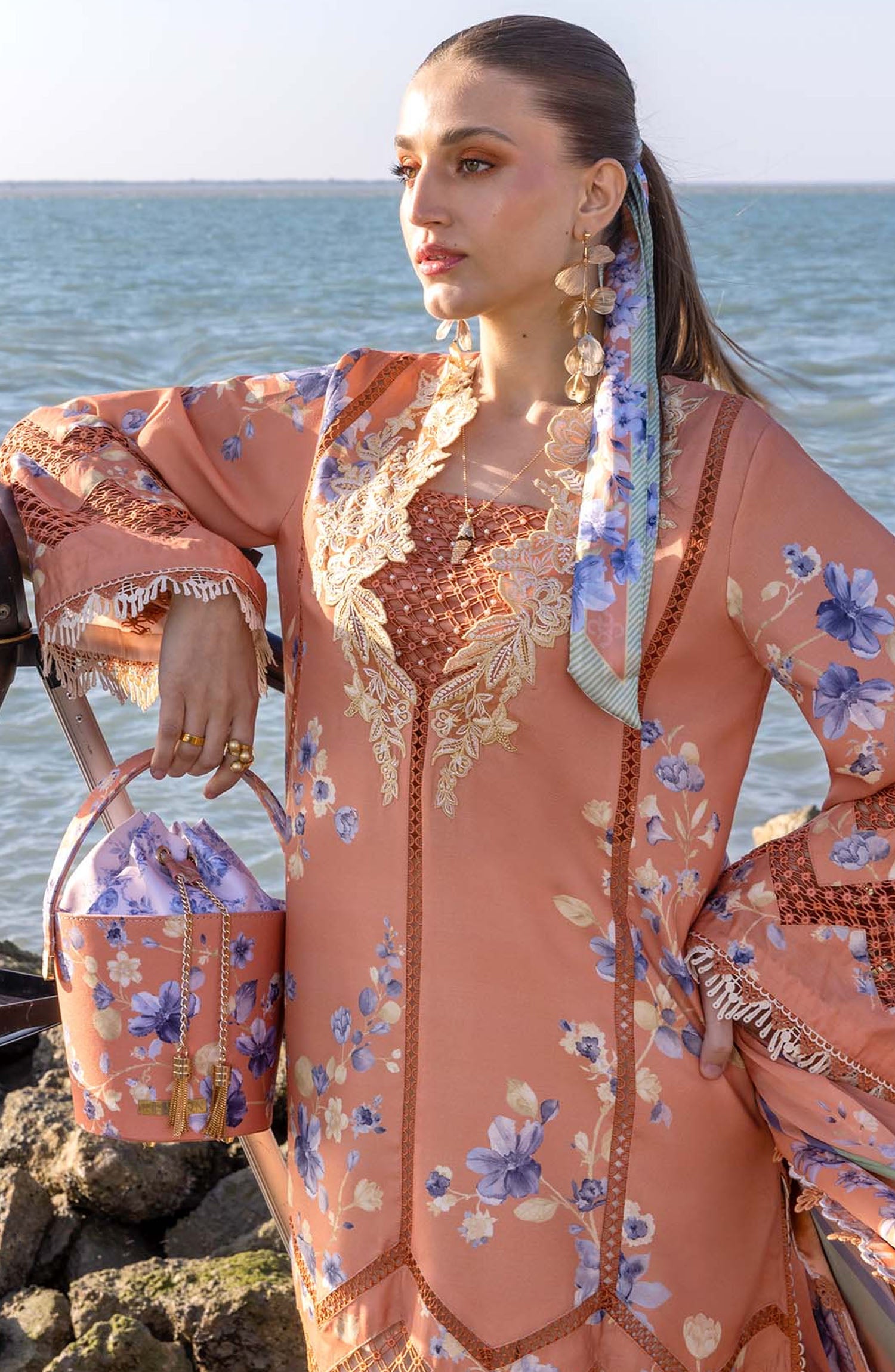 Flow by Crimson Embroidered Lawn Unstitched 3 Piece Suit - D-01 A - CRM25FL - Pink - Summer Collection