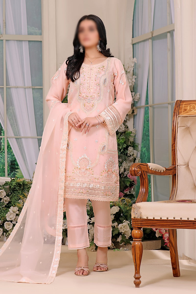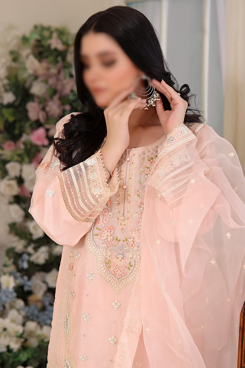 Emaan Adeel Clay and Couture Embroidered Organza Unstitched 3 Piece Suit - CELESTIAL - ED25CC - Pink - Wedding Collection