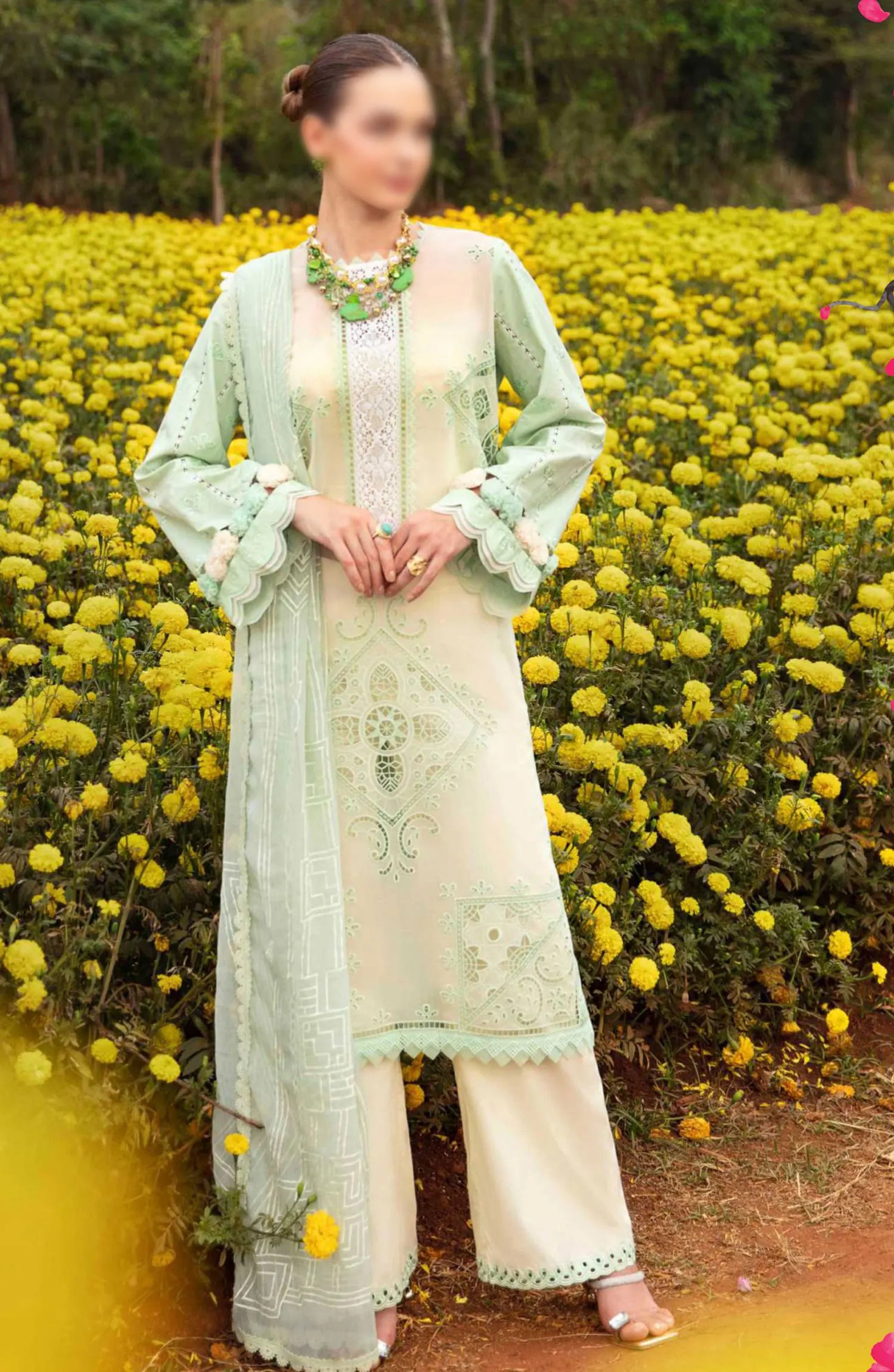 Formal Unstitched Luxury Lawn Collection 2024 has been styled in the image for photography and illustrative purposes.