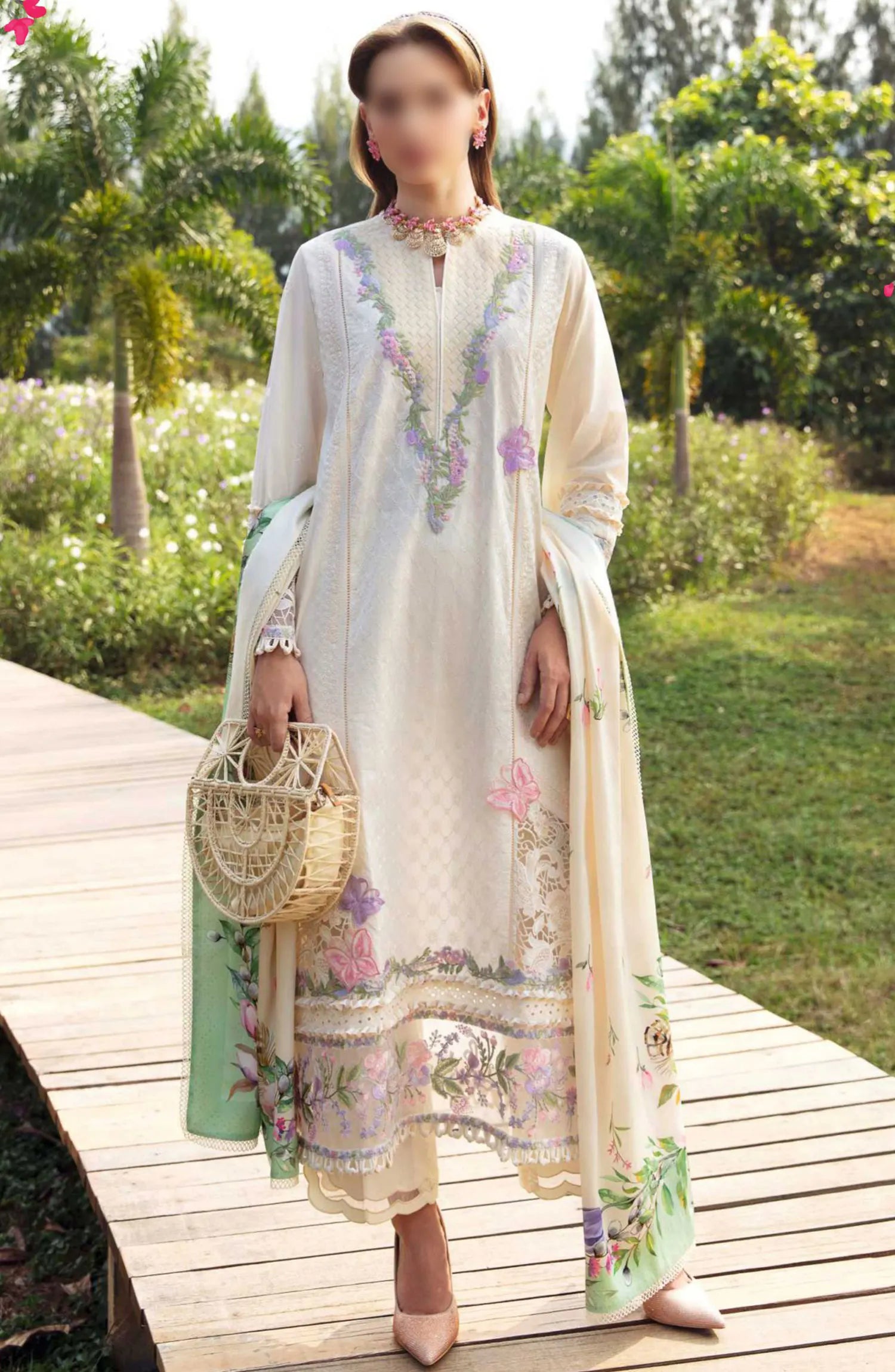 Formal Unstitched Luxury Lawn Collection 2024 has been styled in the image for photography and illustrative purposes.