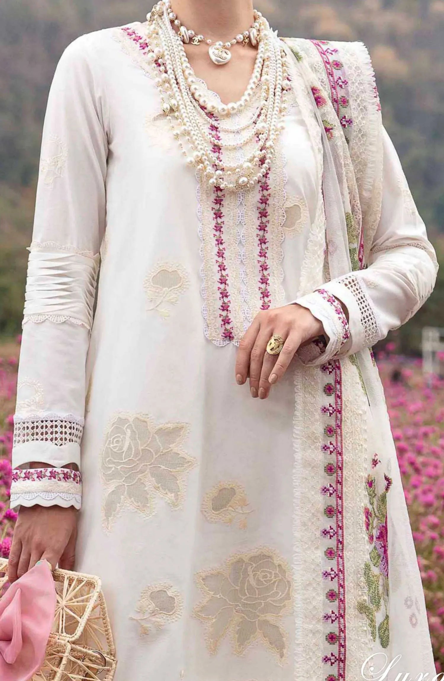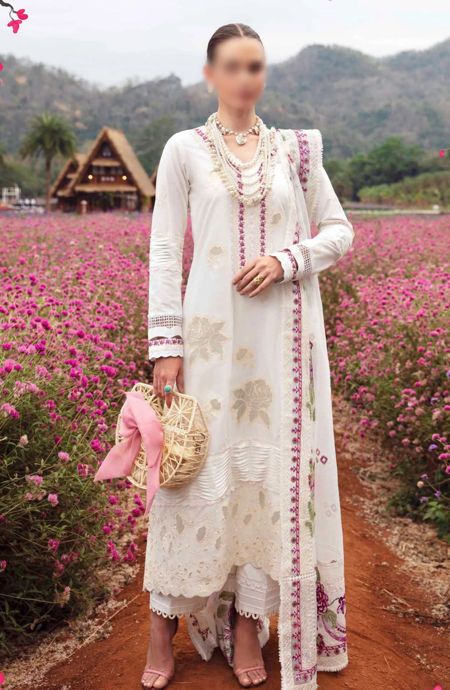 Formal Unstitched Luxury Lawn Collection 2024 has been styled in the image for photography and illustrative purposes.