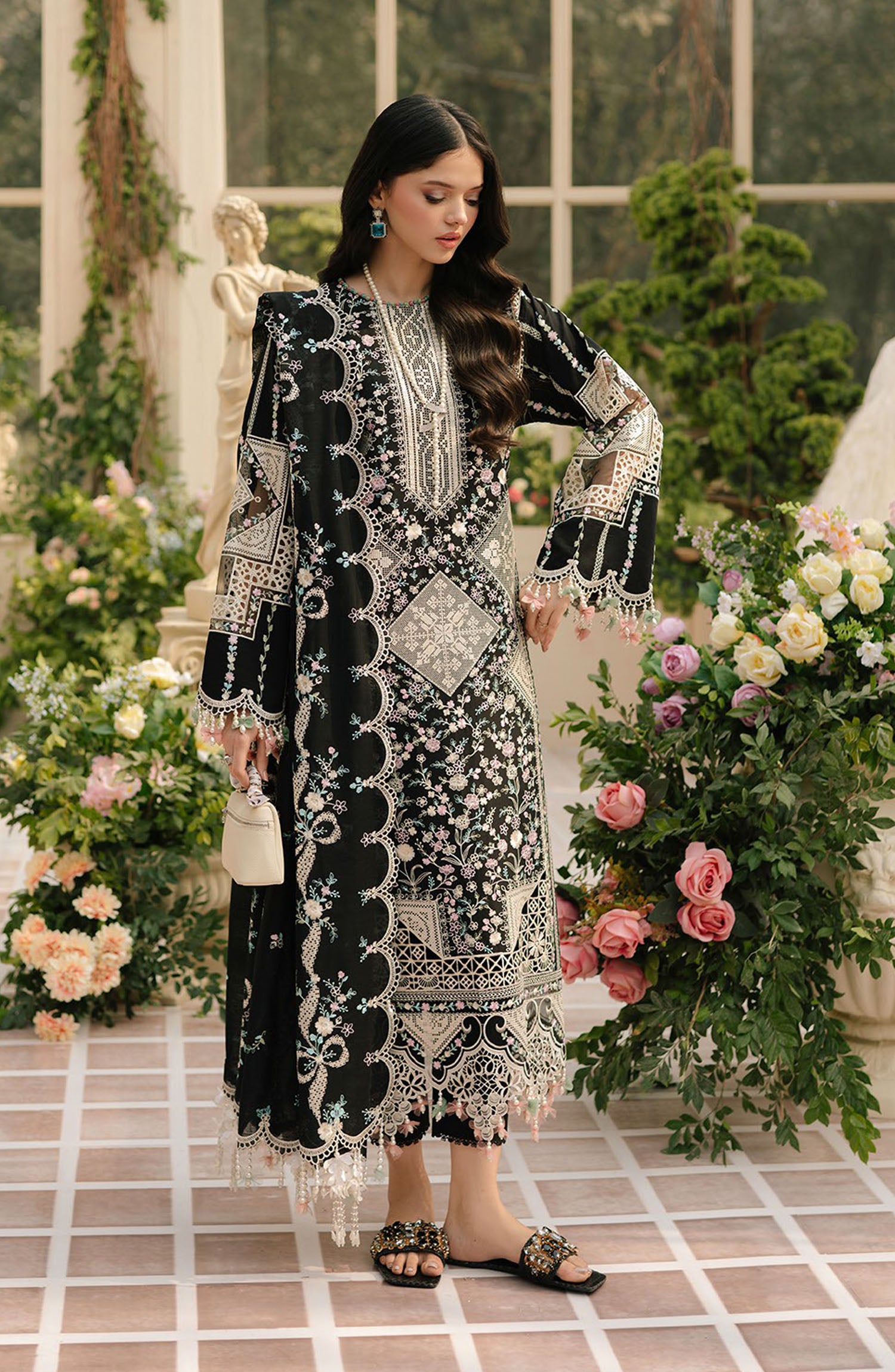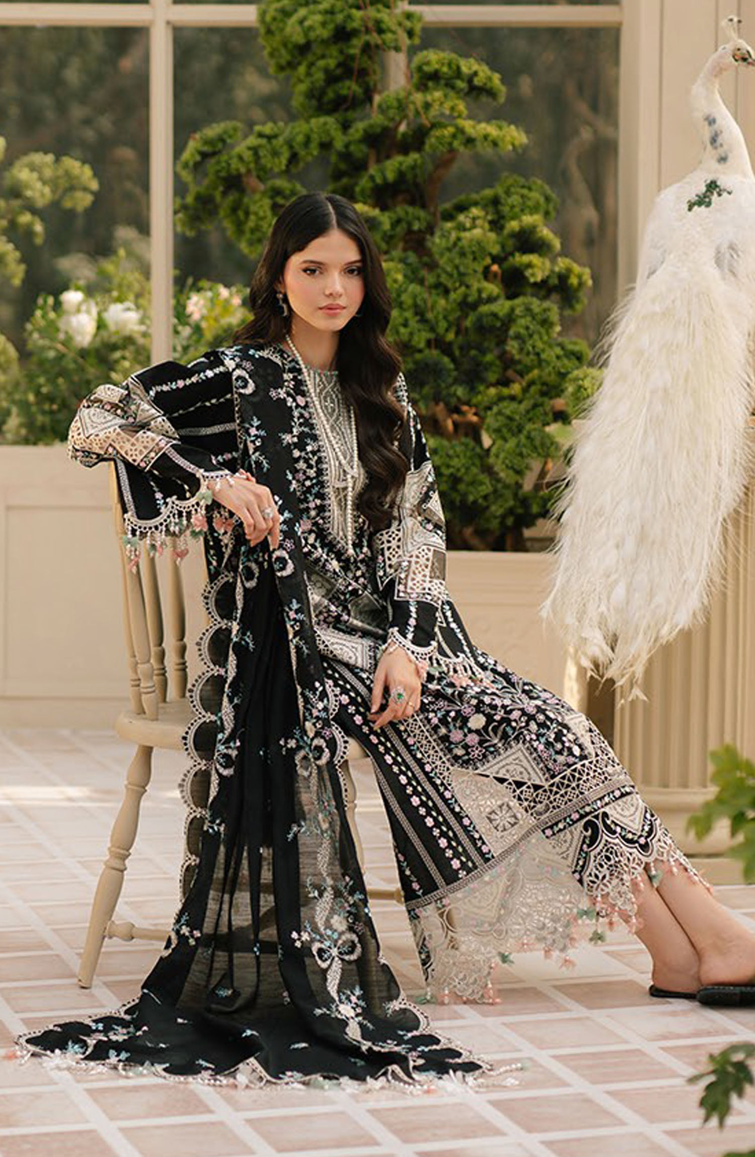 EMBROIDERED FRONT MOTIFS ON DYED ORGANZA 2 Pieces