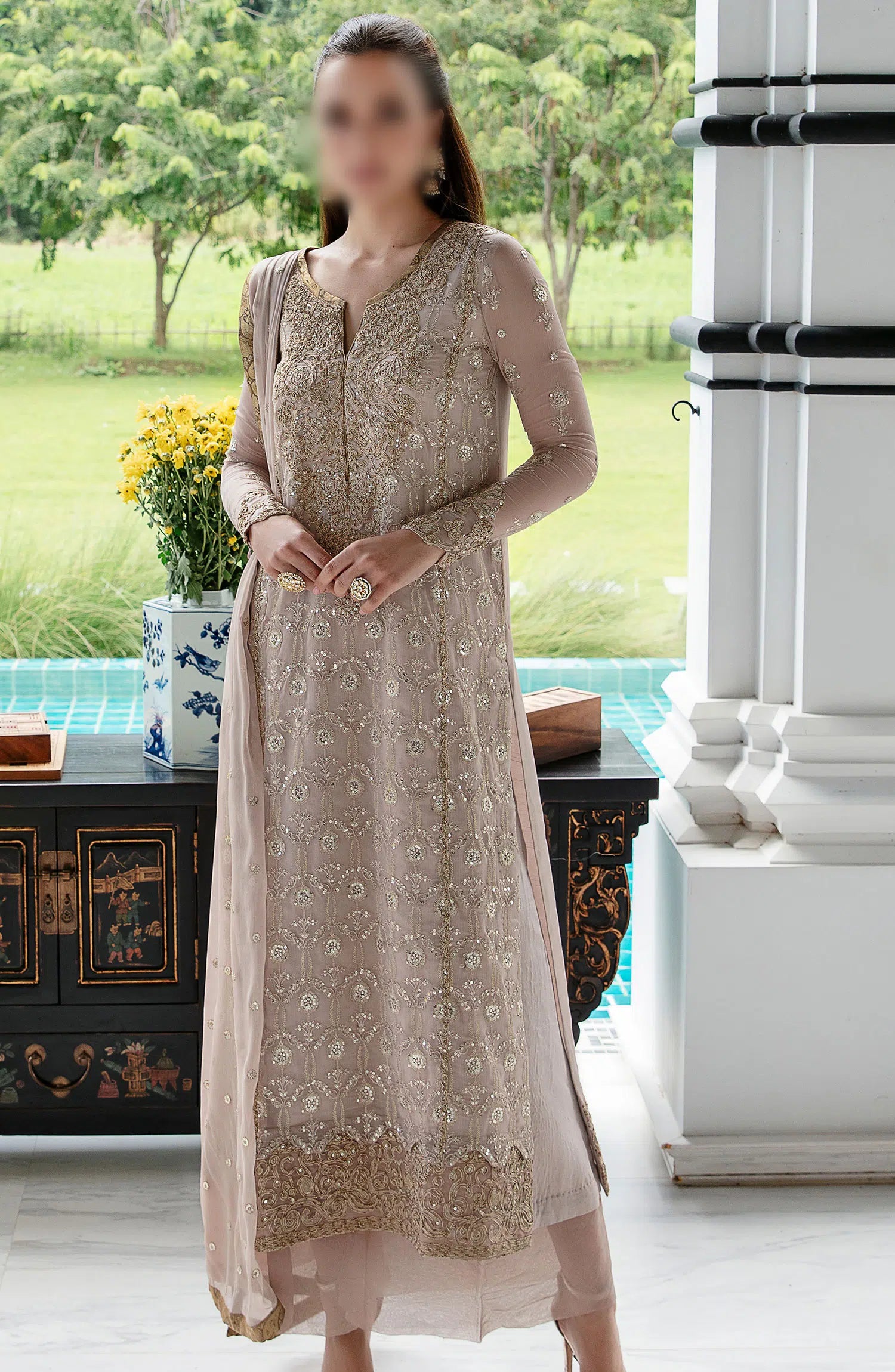 The standard style comes as a long-sleeved kameez with dupatta and trouser/shawlar.