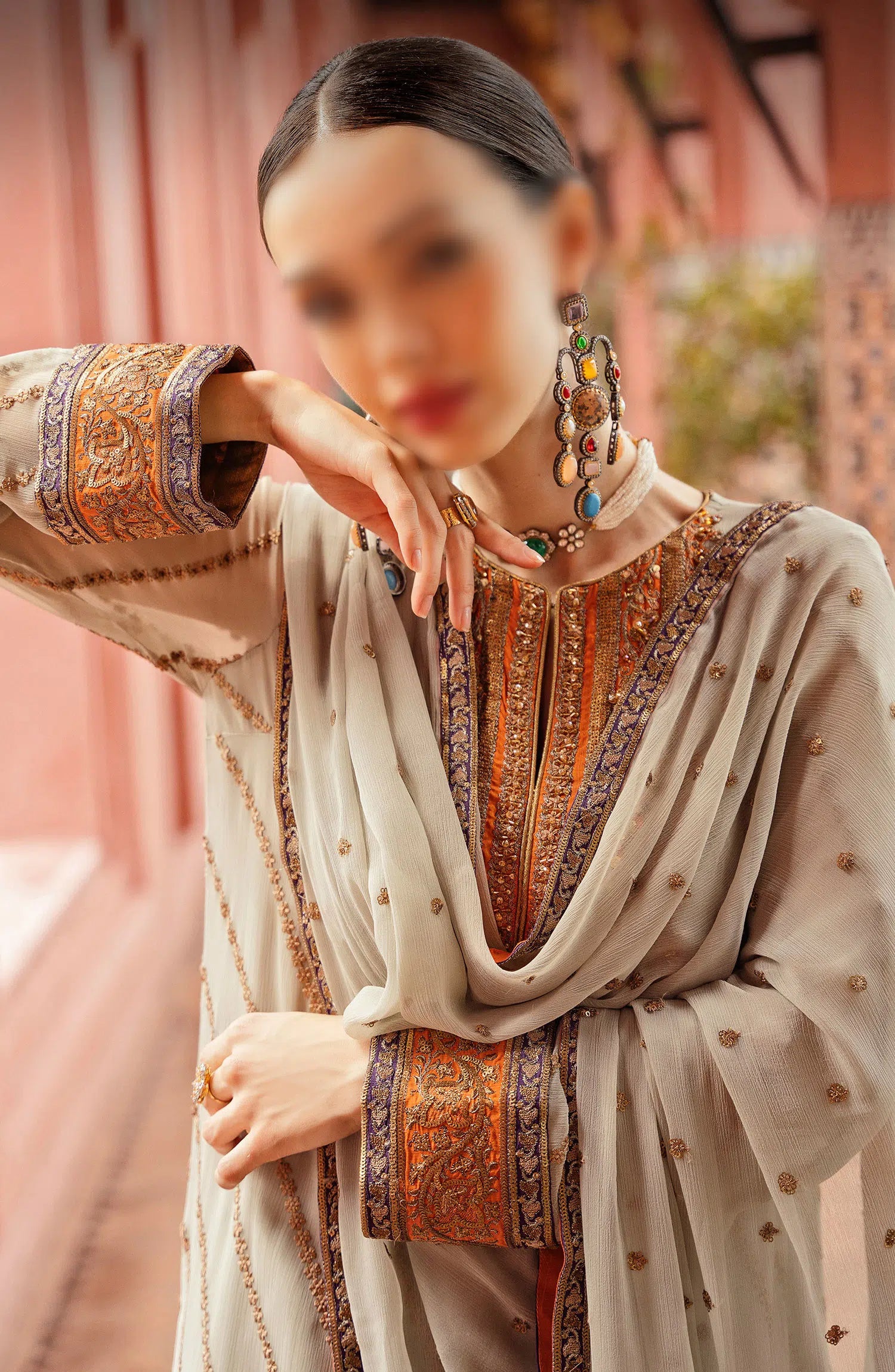 Embroidered Front,Back,Sleeves/Orange Patti (Grip) 2.75Yrds