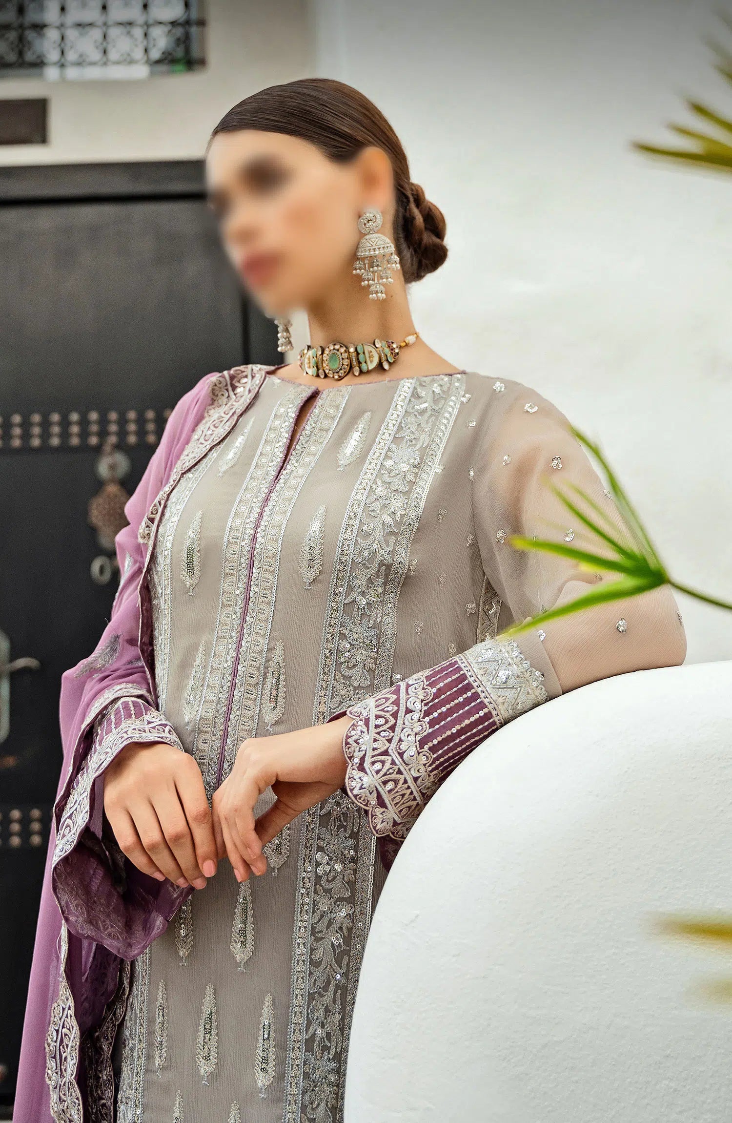 Embroidered Front,Sleeves/Grape Patti (Organza) 2.35Yrds