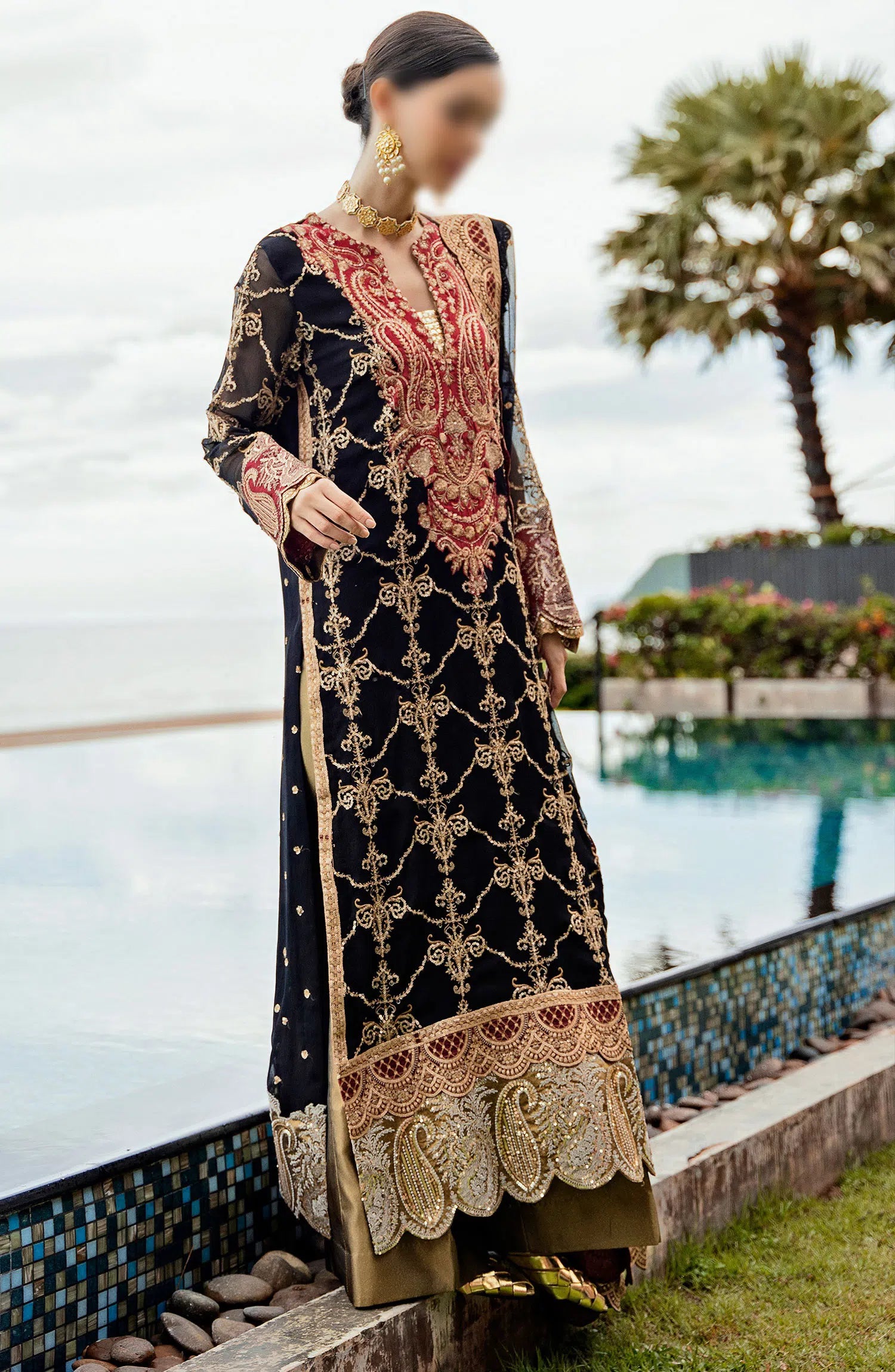 The standard style comes as a long-sleeved kameez with dupatta and trouser/shawlar.
