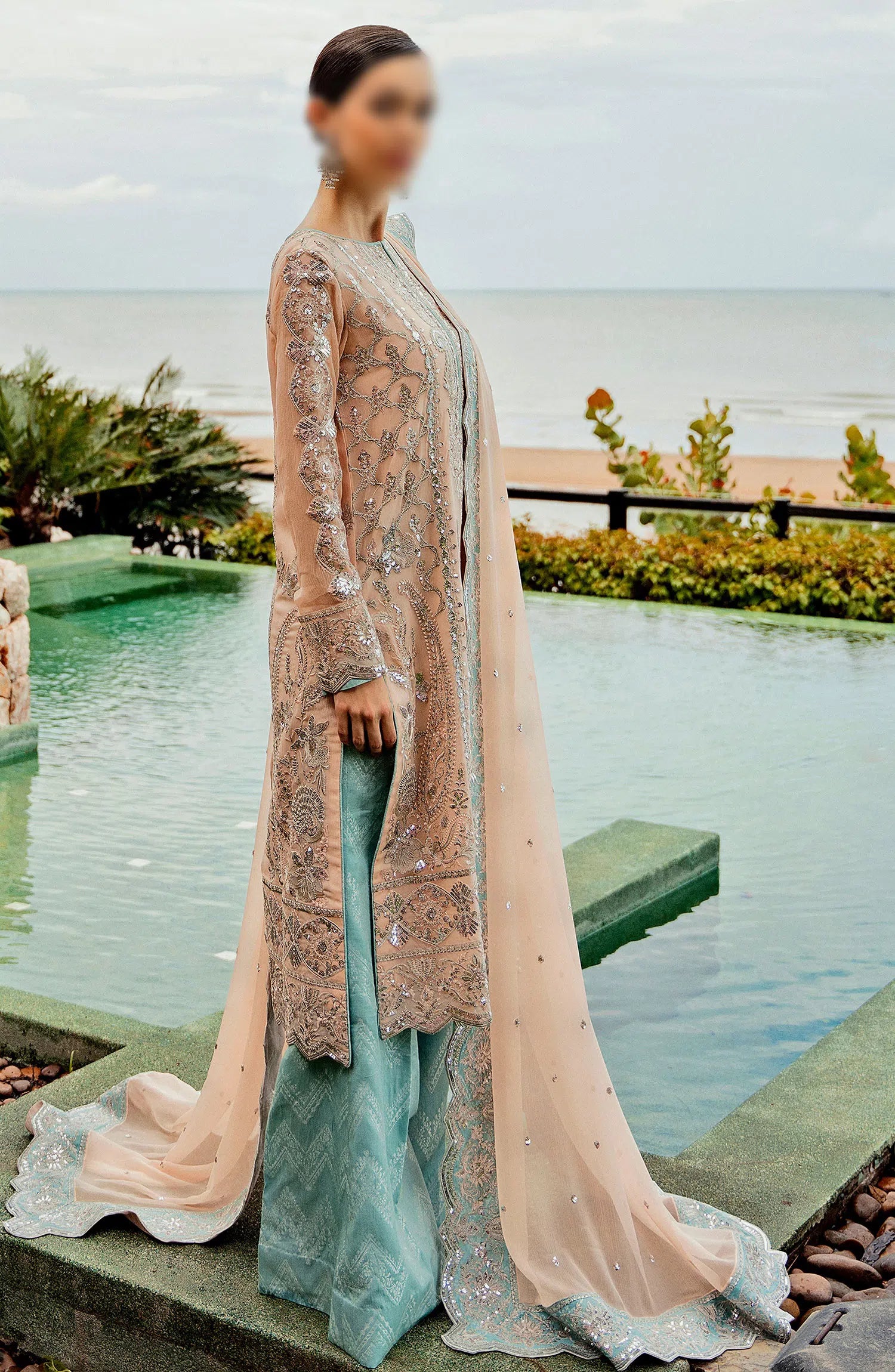 The standard style comes as a long-sleeved kameez with dupatta and trouser/shawlar.