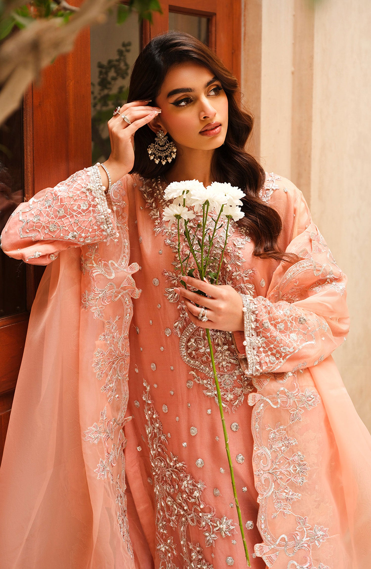 Freesia Musq Luxury Formal Unstitched Collection 2024 has been styled in the image for photography and illustrative purposes.