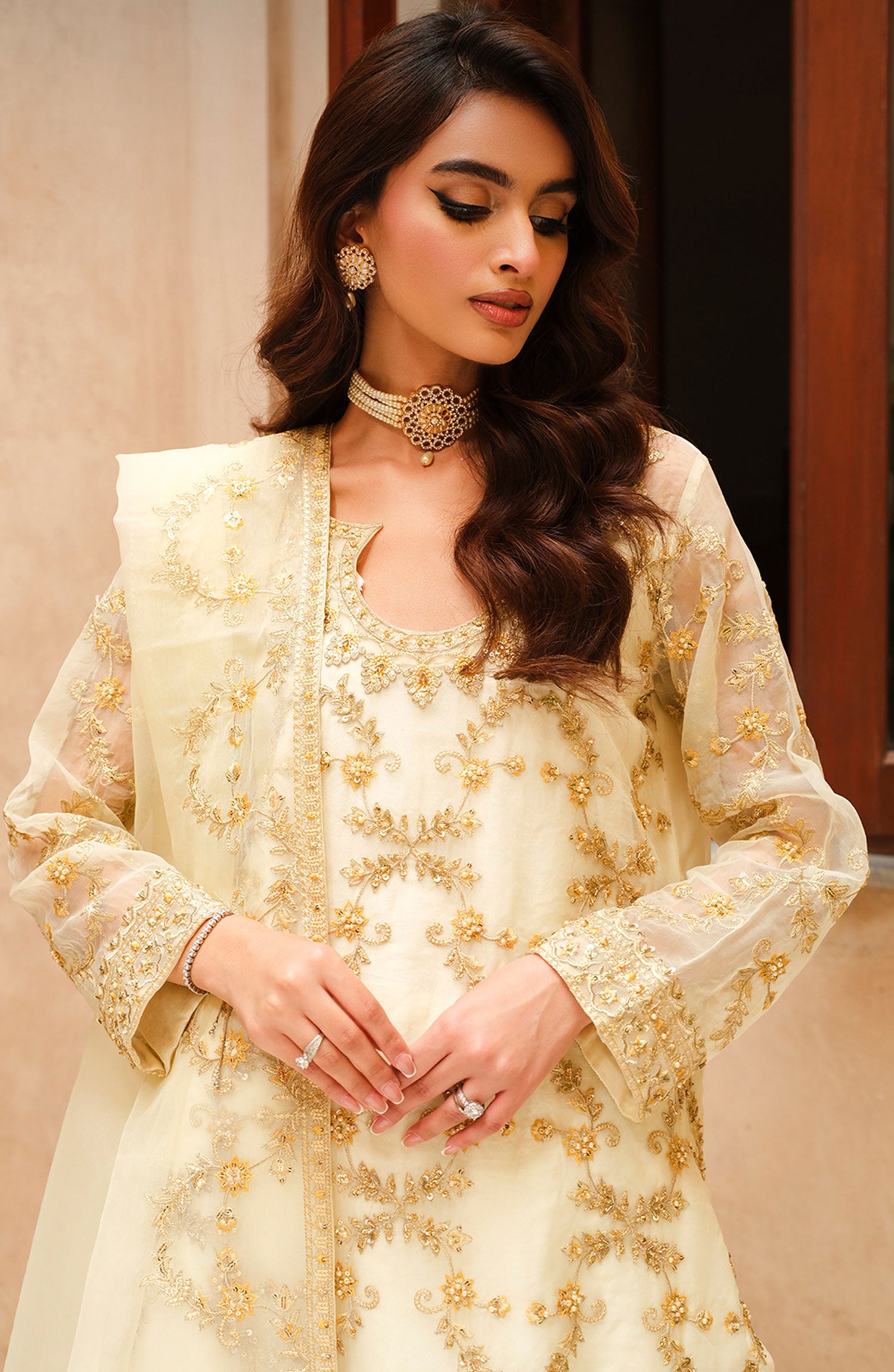 Freesia Musq Luxury Formal Unstitched Collection 2024 has been styled in the image for photography and illustrative purposes.