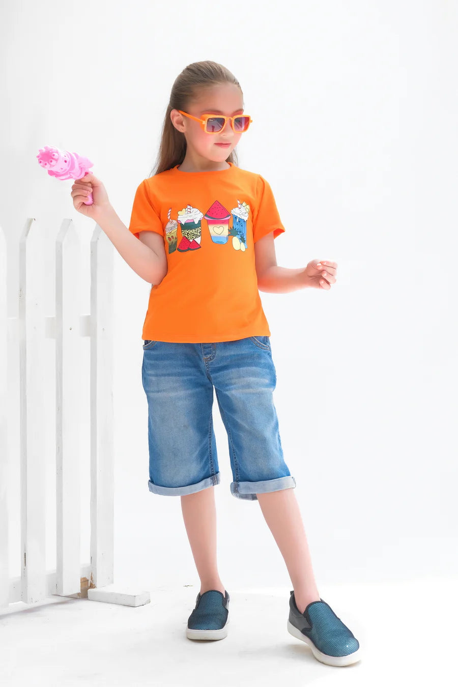 Fruits Shake - Half Sleeves T-Shirts For Kids - Orange