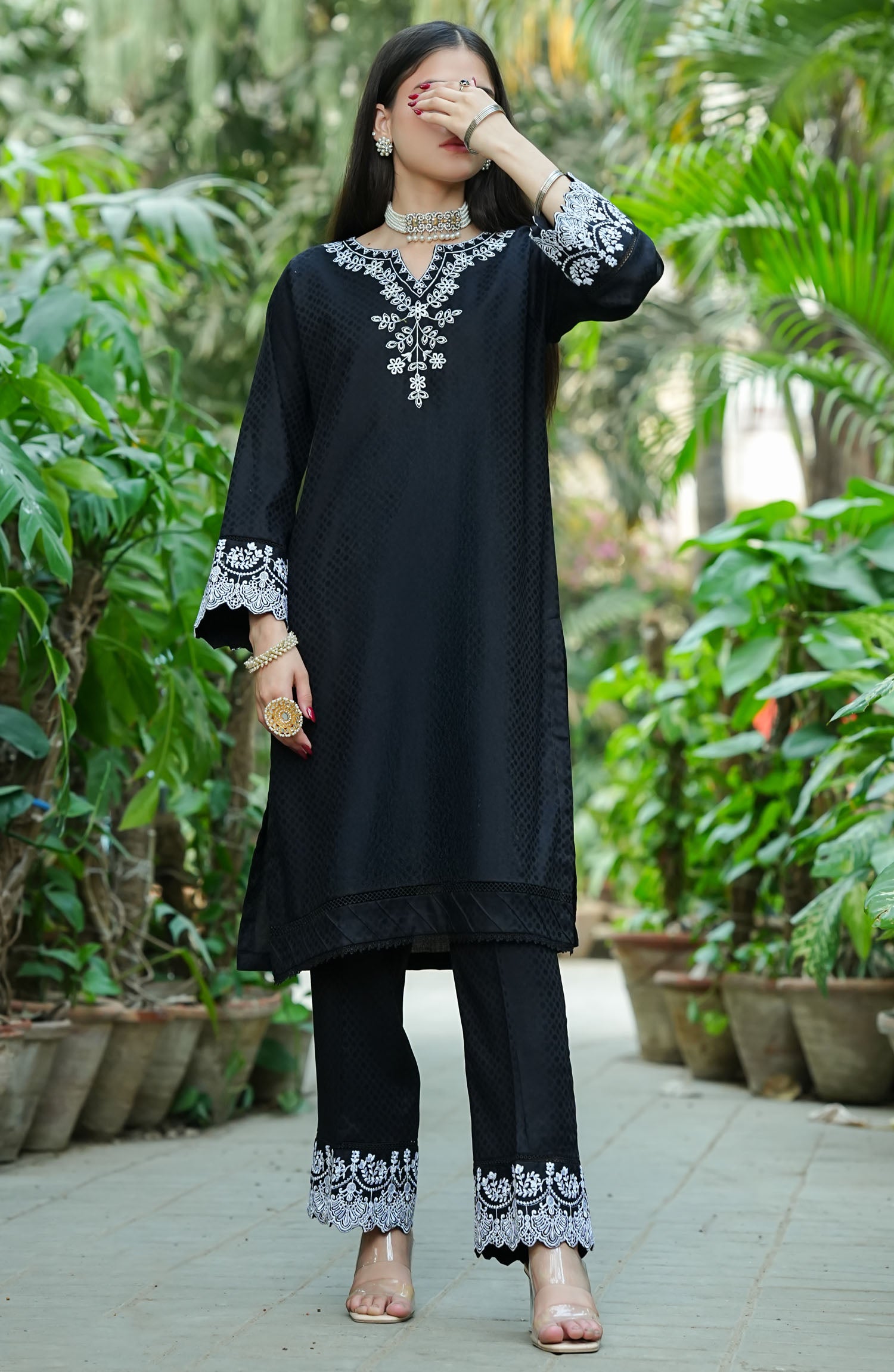 Stitched Premium Jacquard Embroidered shirt with embellishments