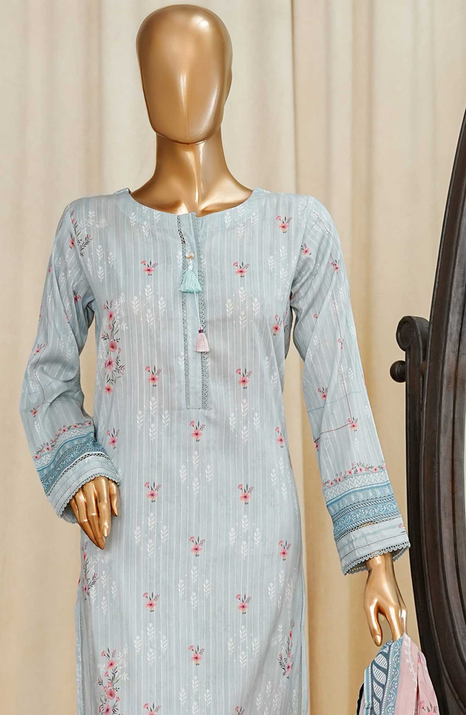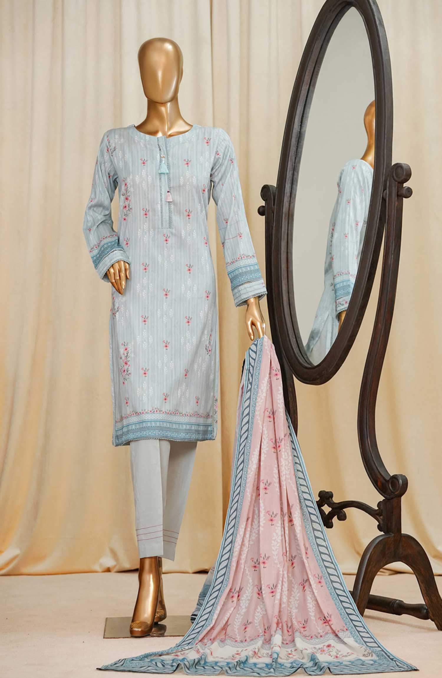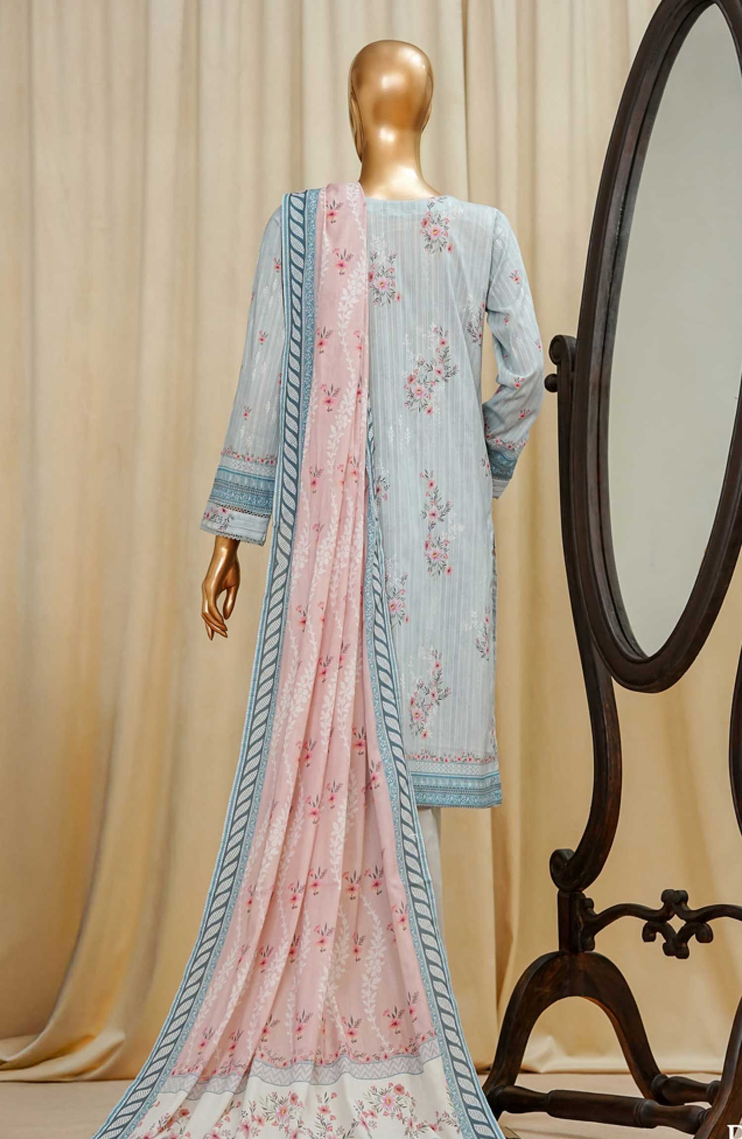 Gardenia by HZ Textile Printed Swiss Lawn Stitched 3 Piece - PDL-712 GREYISH BLUE - HZ25PDL - Summer Collection