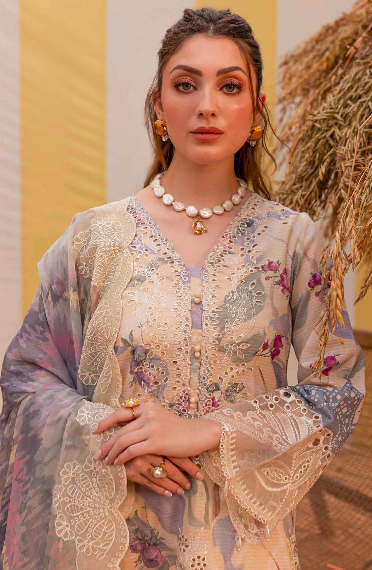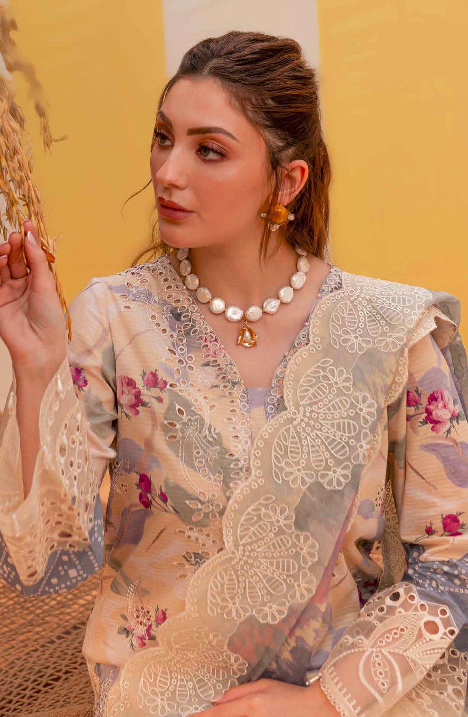 "Gardenia by Nureh Embroidered and Chikankari Lawn Collection has been styled in the image for photography and illustrative purposes.