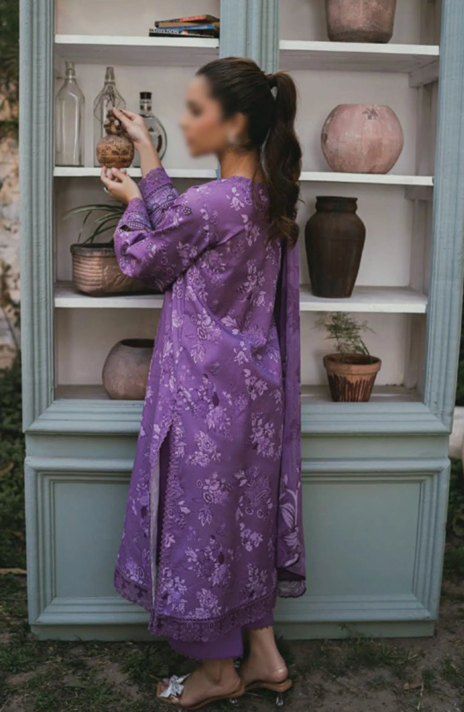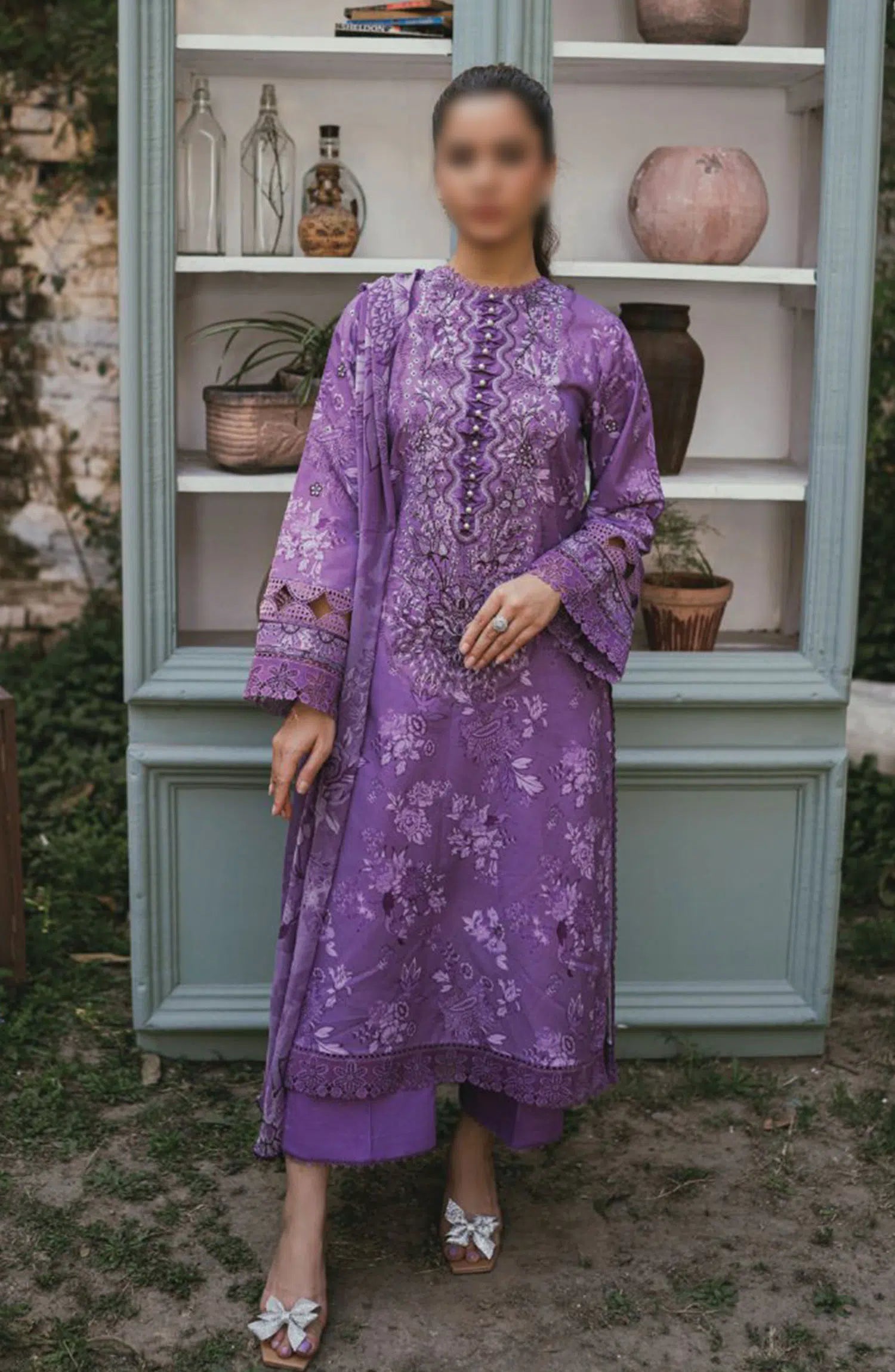 Gardenia Vol 02 Embroidered Print Lawn Collection By Humdum has been styled in the image for photography and illustrative purposes.