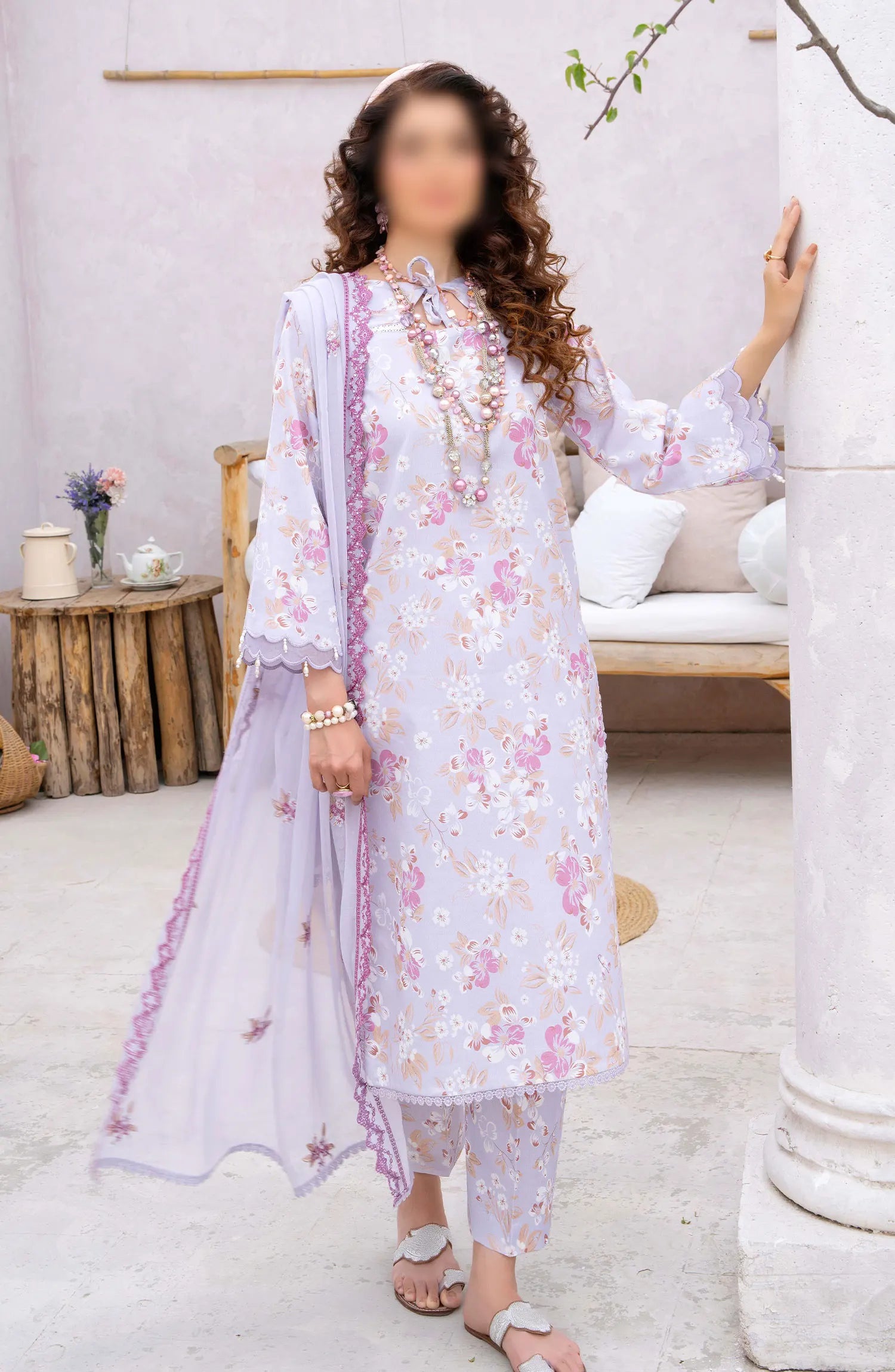 Gardenia Vol 03 Embroidered Print Lawn Collection By Humdum has been styled in the image for photography and illustrative purposes.