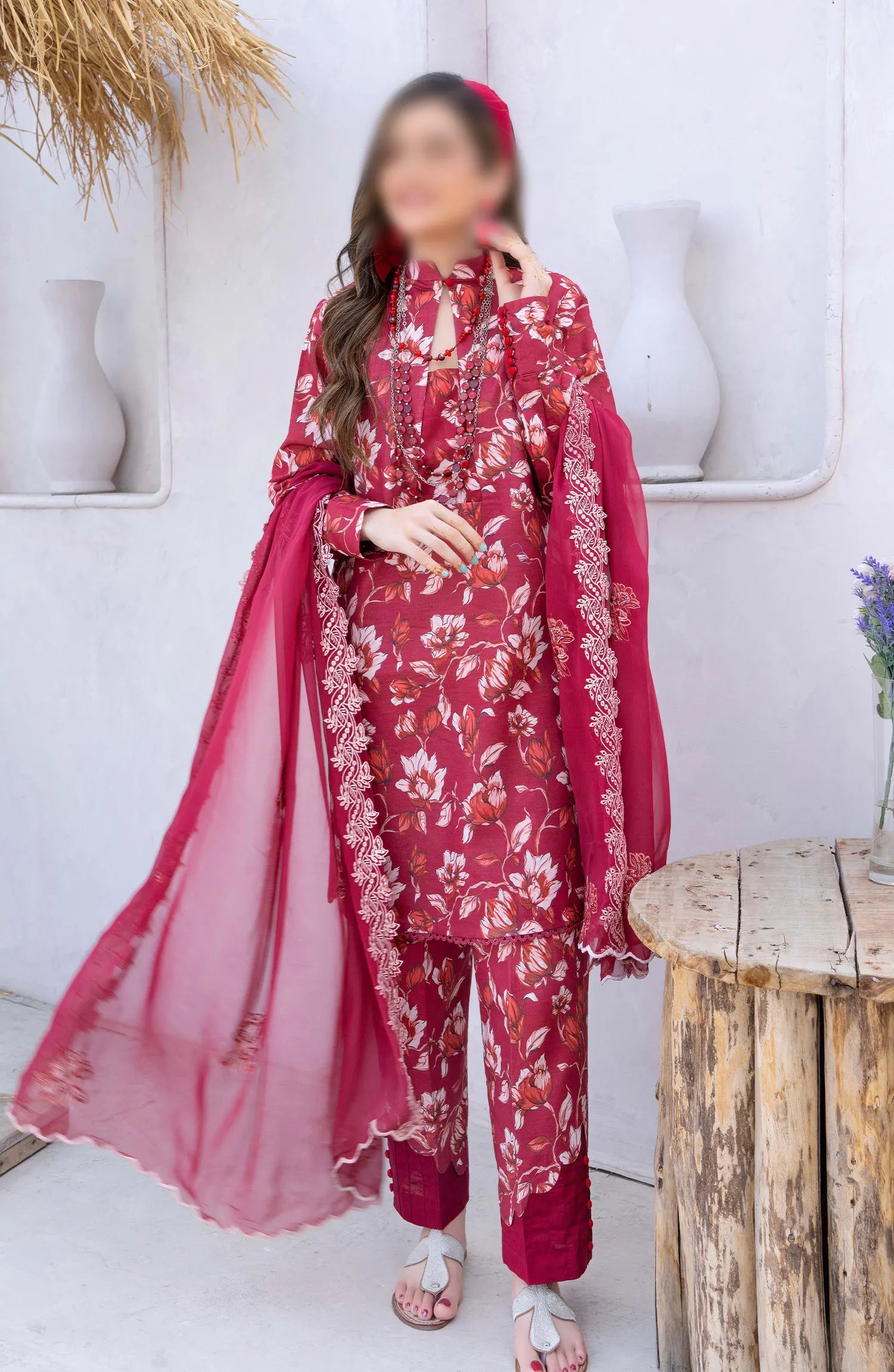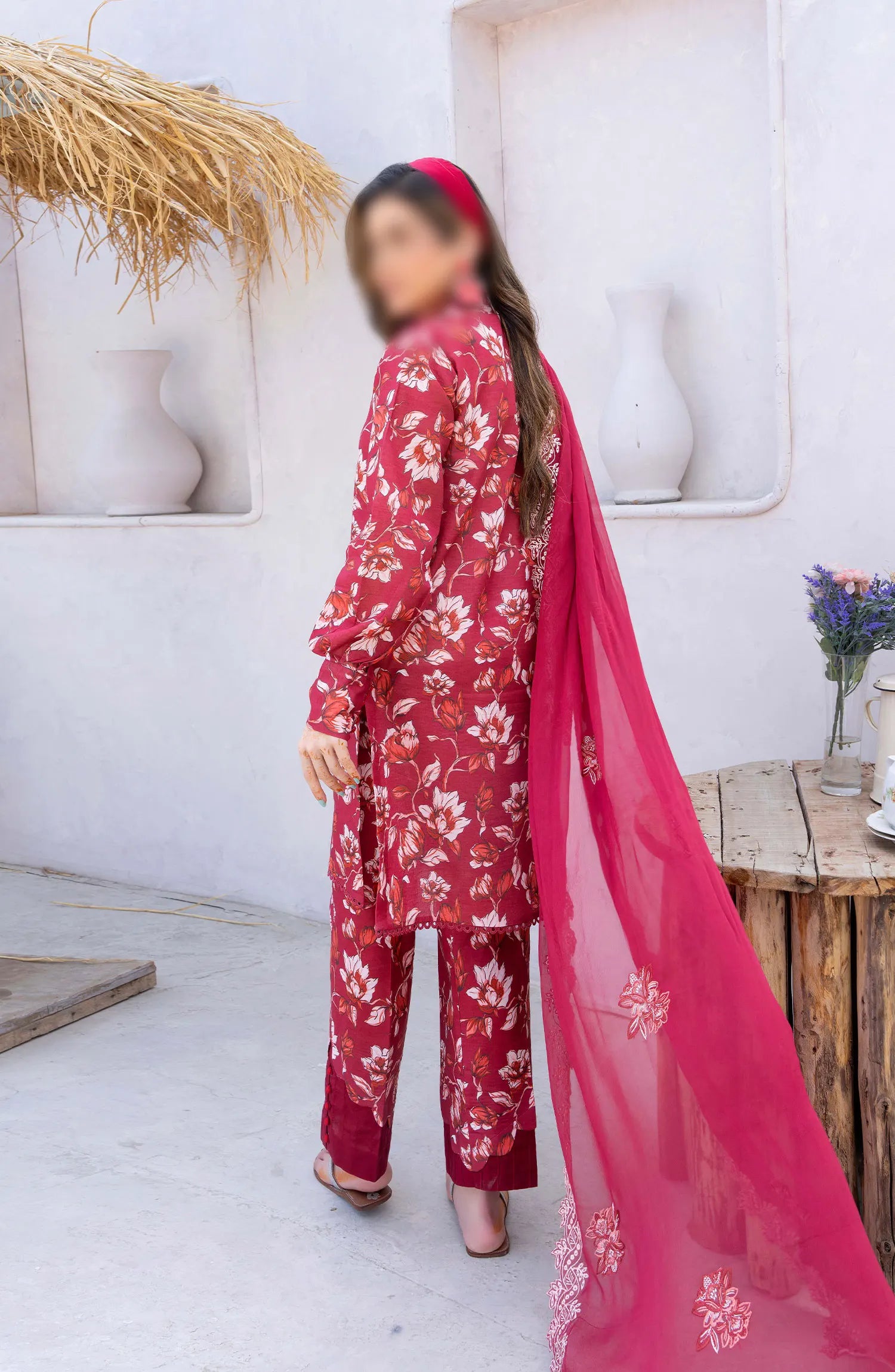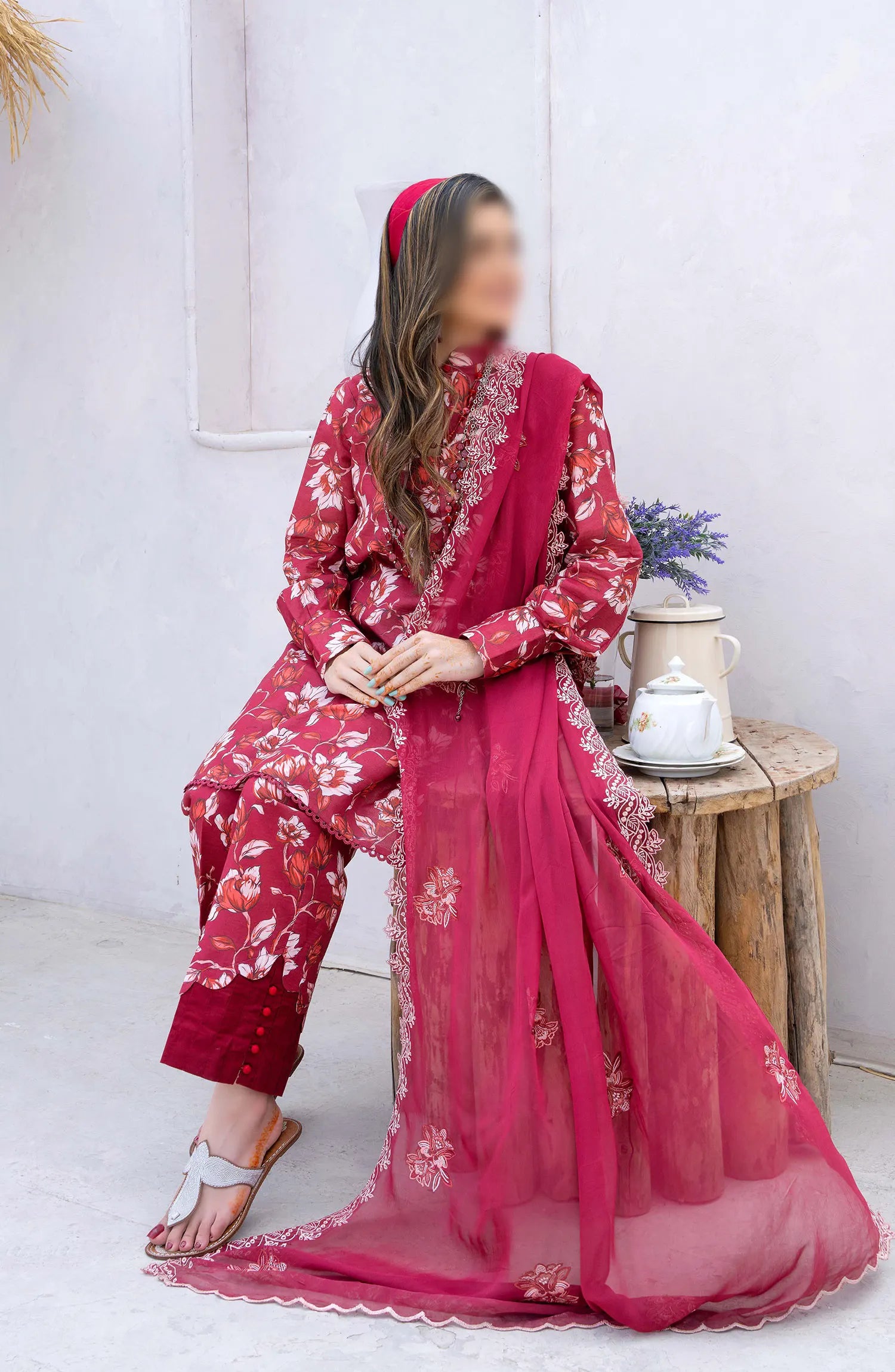 Gardenia Vol 03 Embroidered Print Lawn Collection By Humdum has been styled in the image for photography and illustrative purposes.