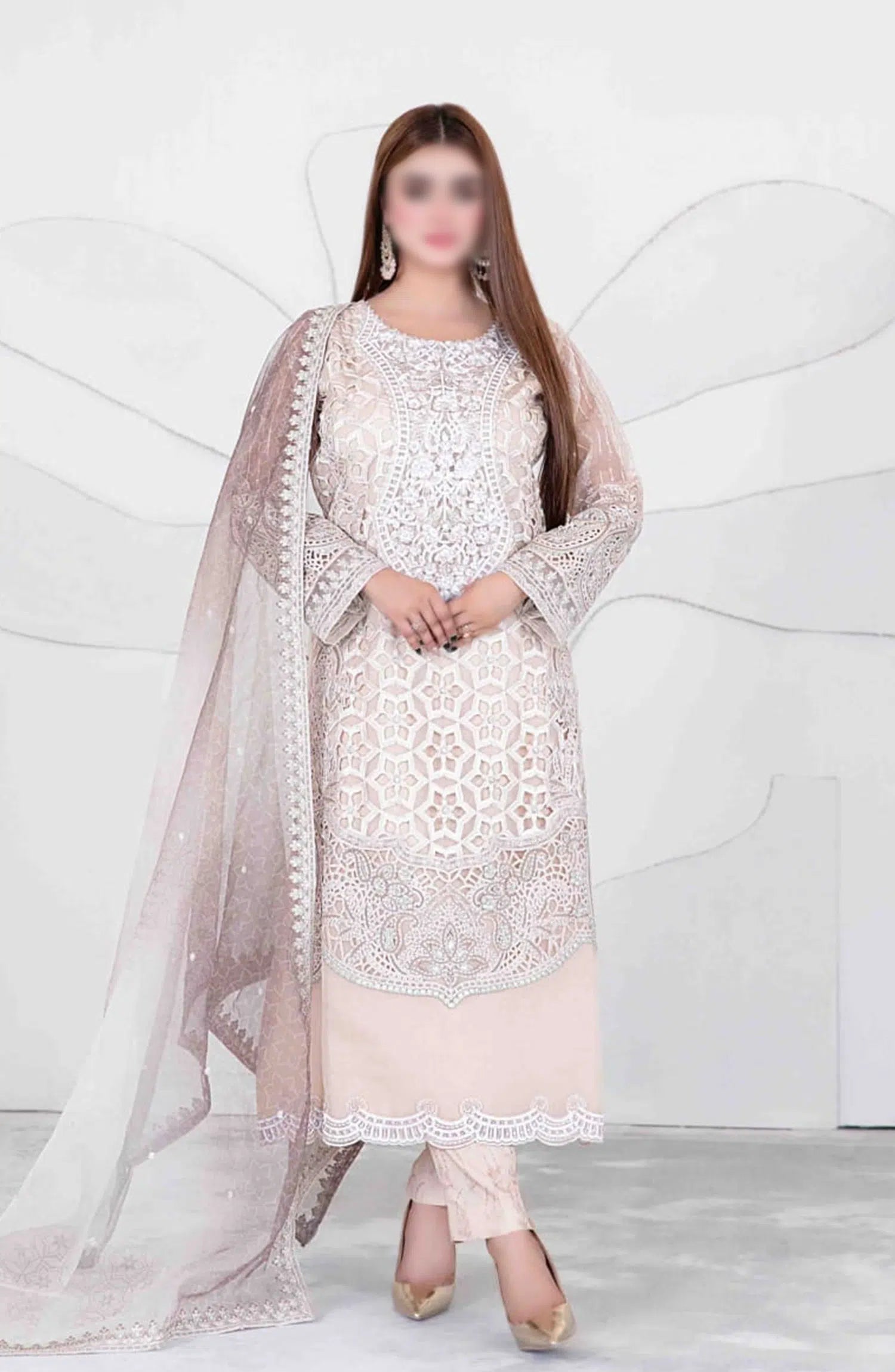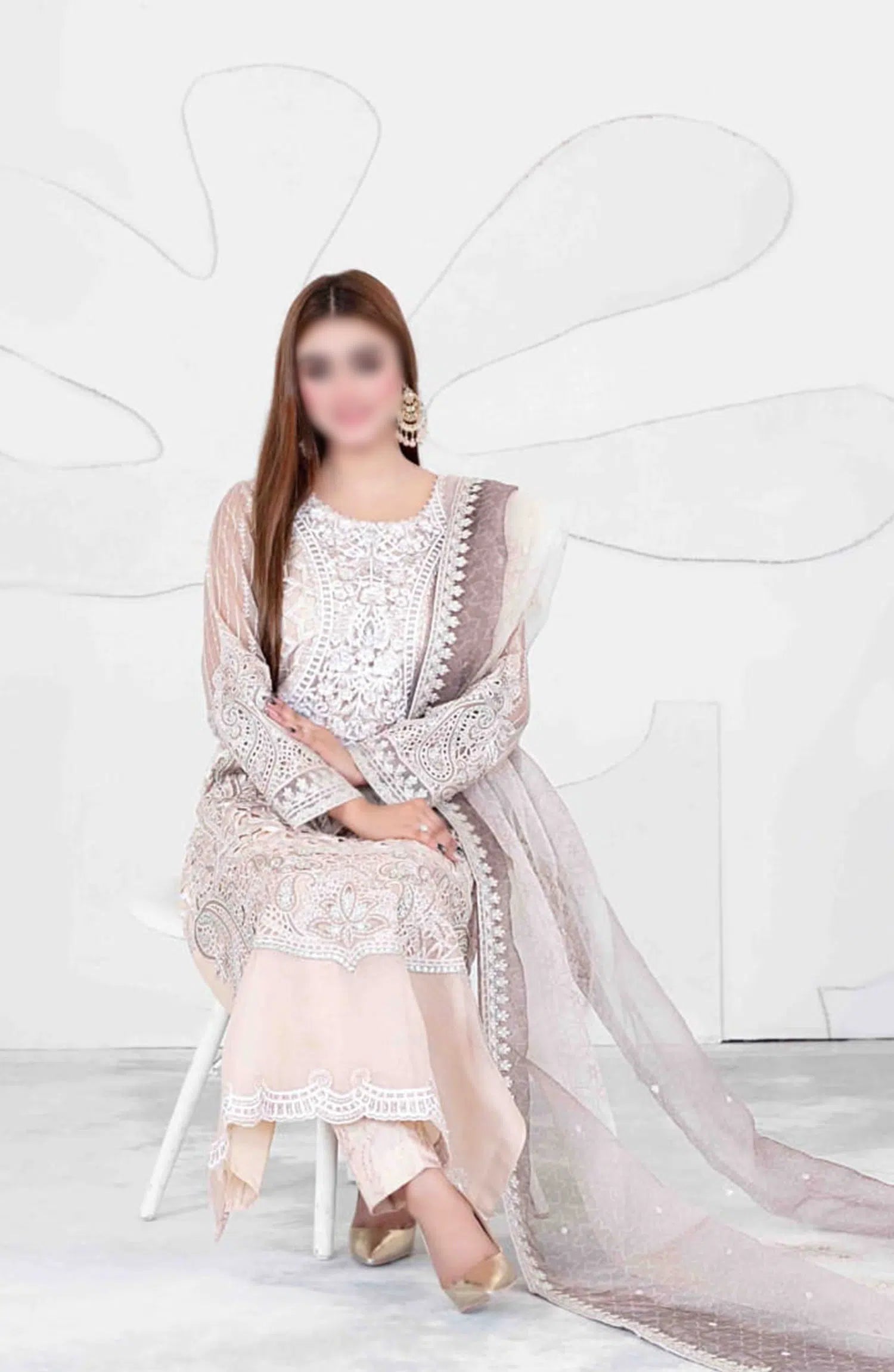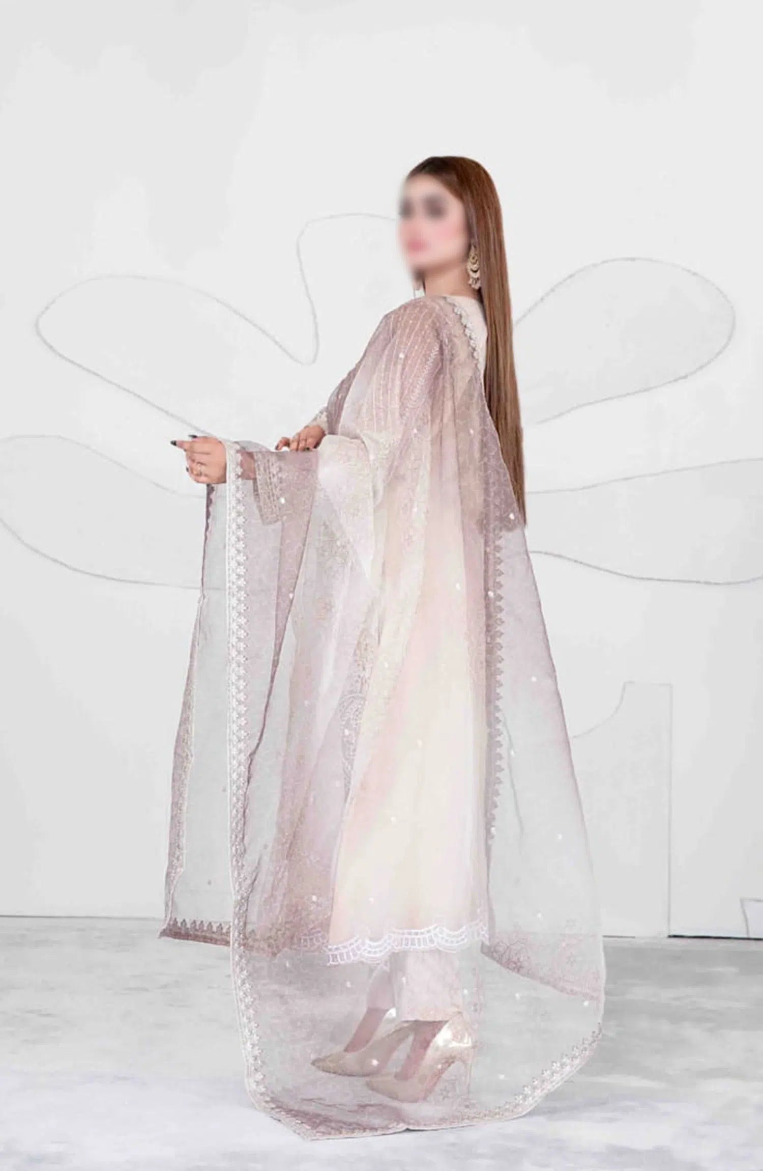 Semi-Stitched Fancy Exclusive Embroidered Orgaza Shirt with Embellishments & Inner Fabric