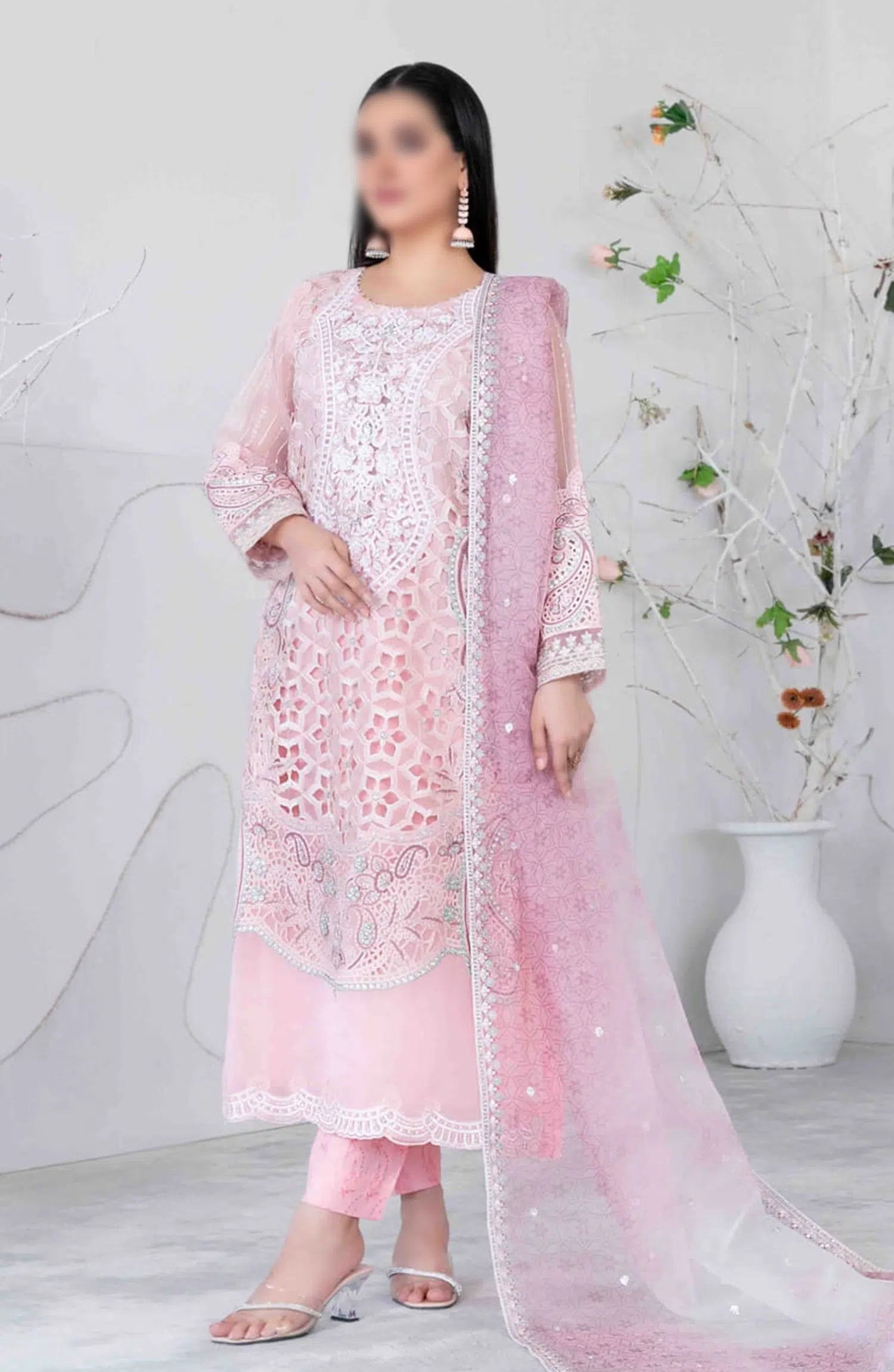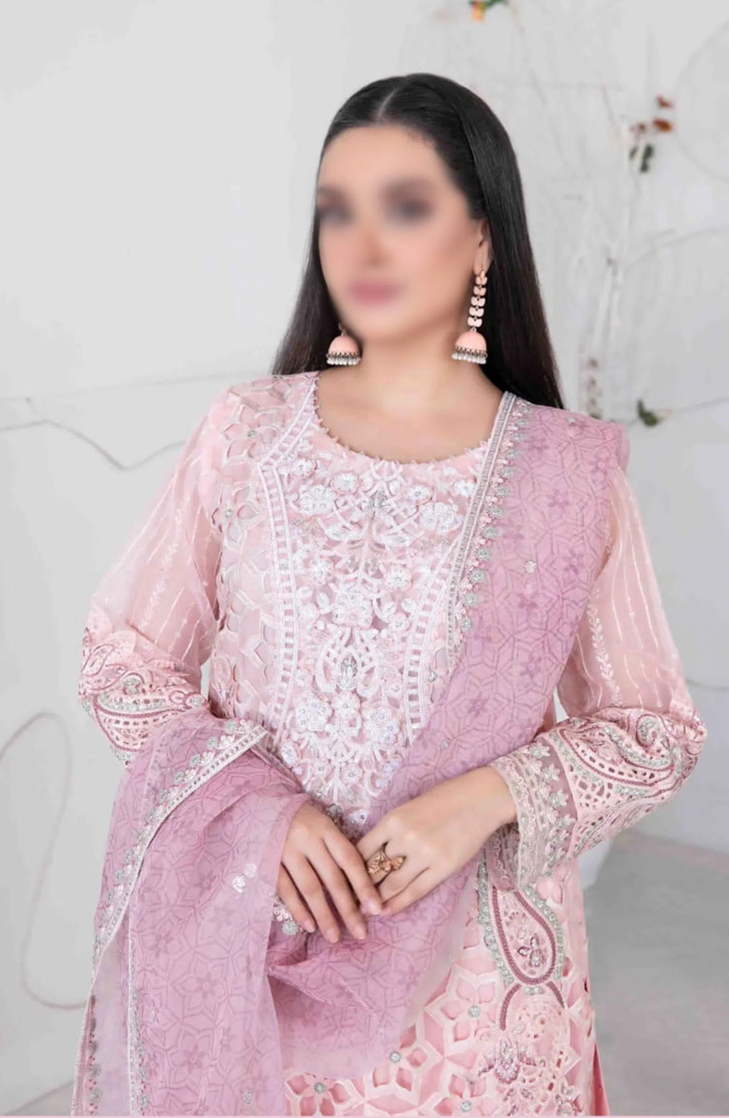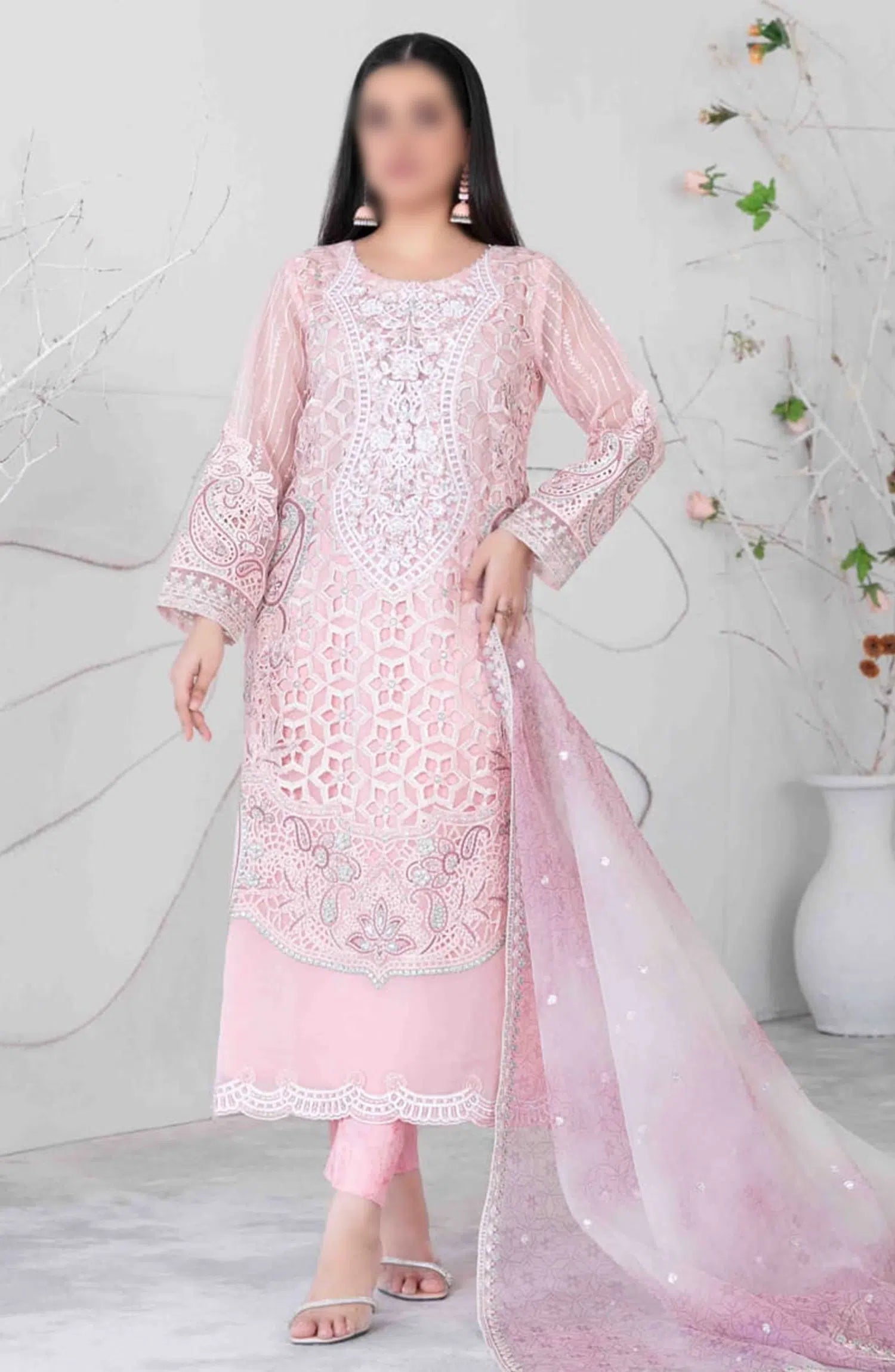 Semi-Stitched Fancy Exclusive Embroidered Orgaza Shirt with Embellishments & Inner Fabric