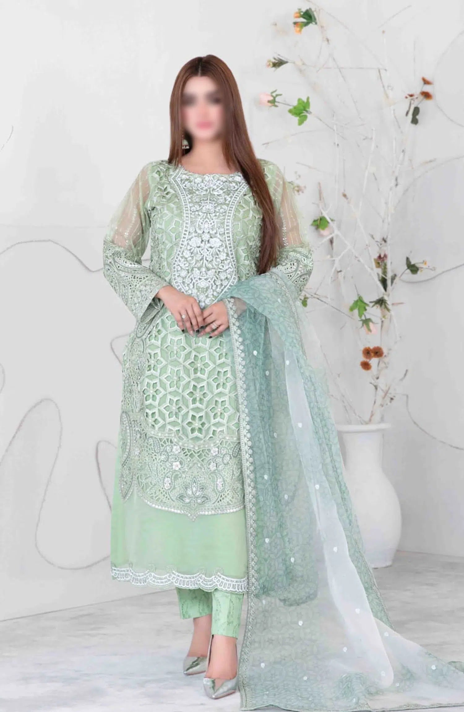Gelareh - Exclusive Organza Collection 2024 By Tawakkal Fabrics has been styled in the image for photography and illustrative purposes.
