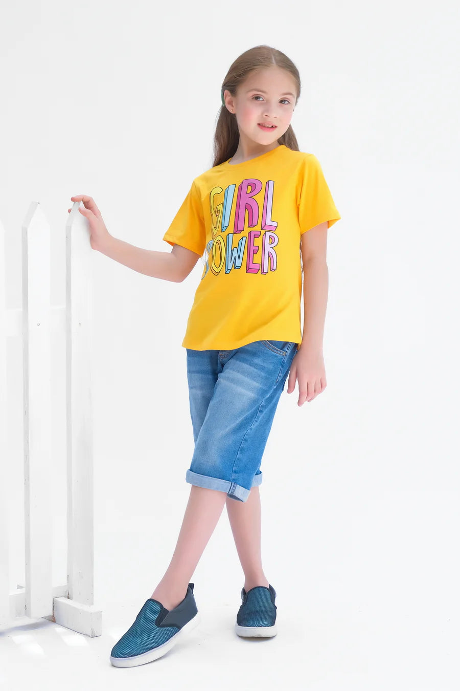 Girl Power - Half Sleeves T-Shirts For Kids - Yellow
