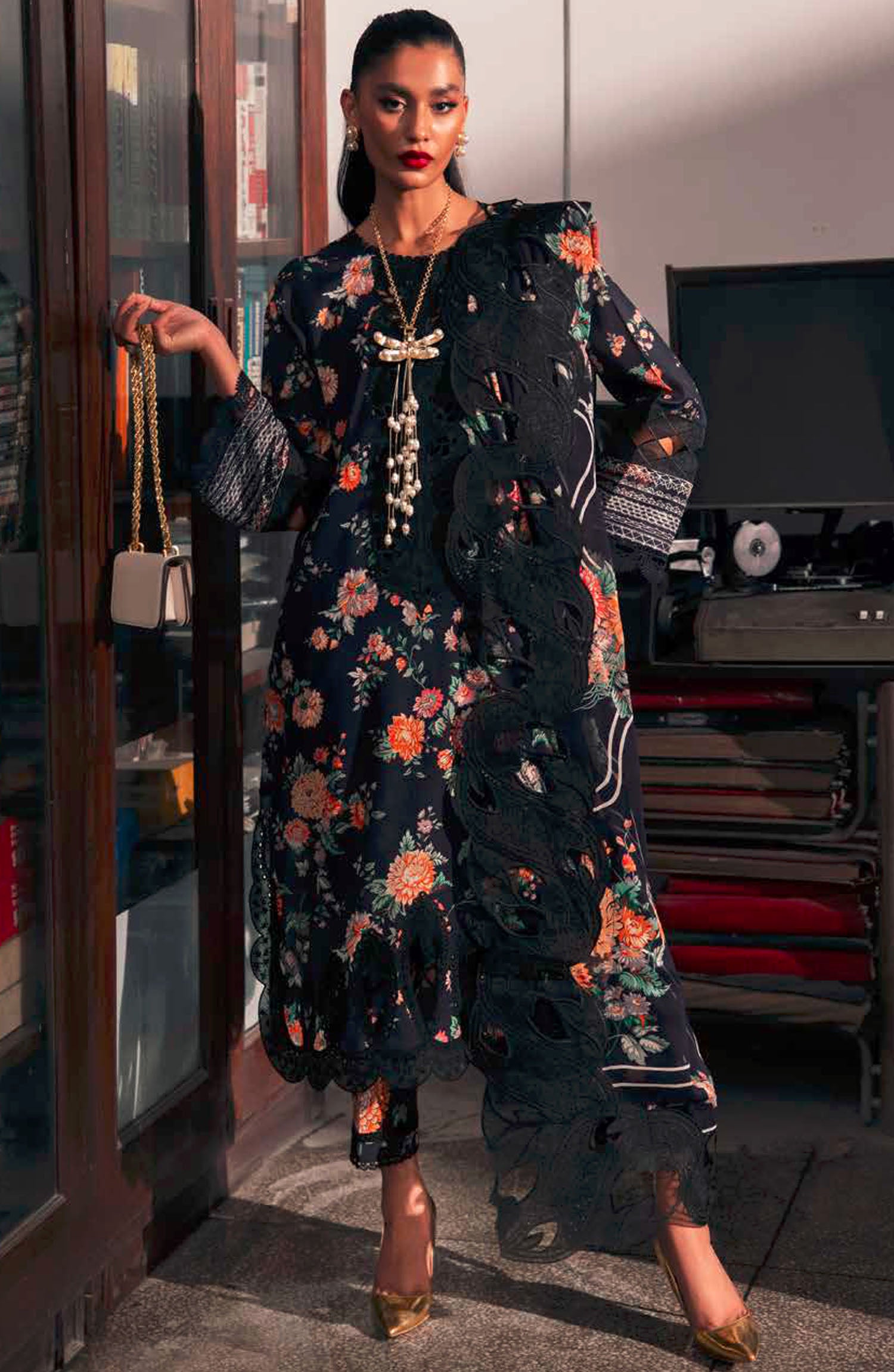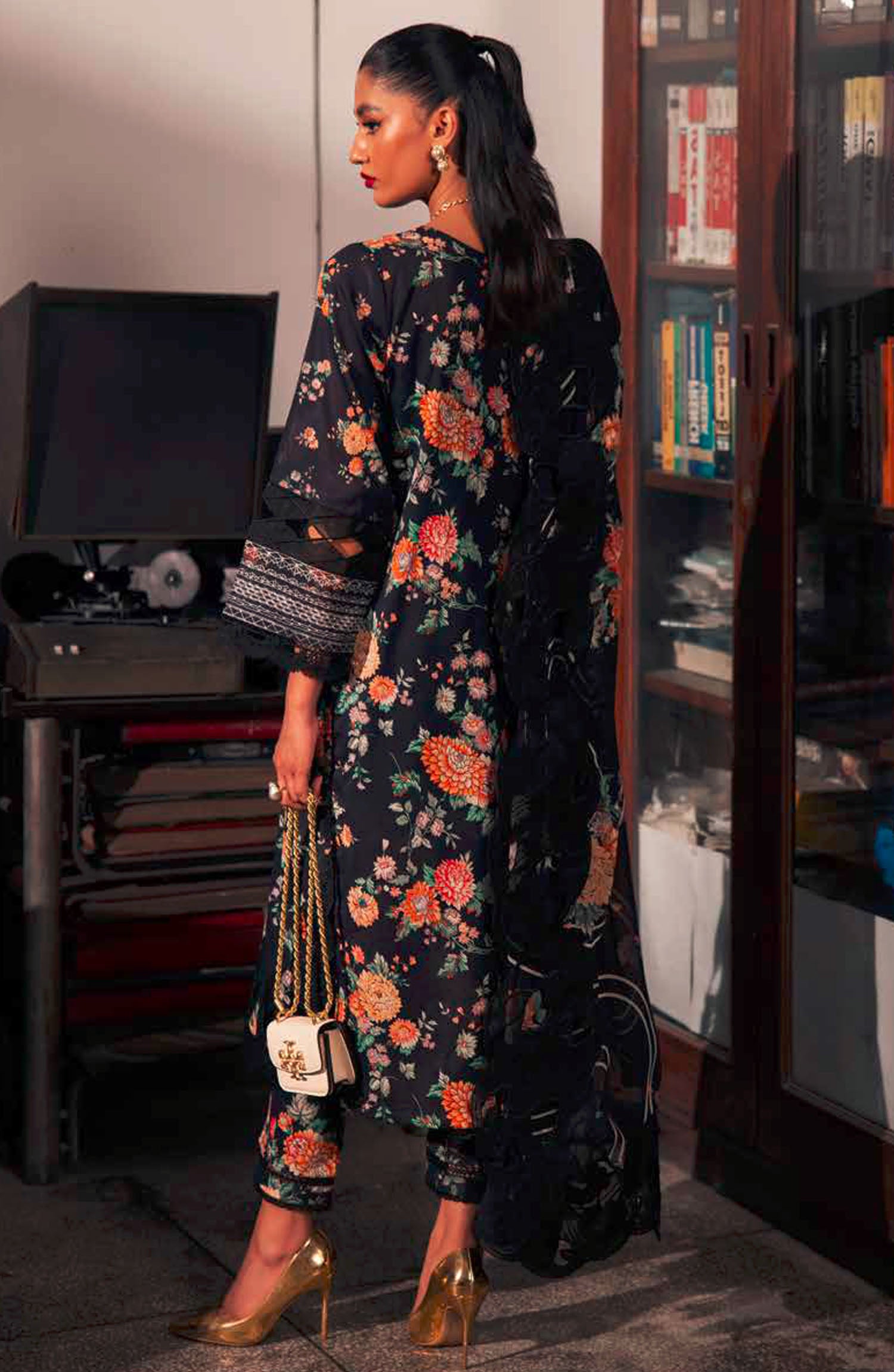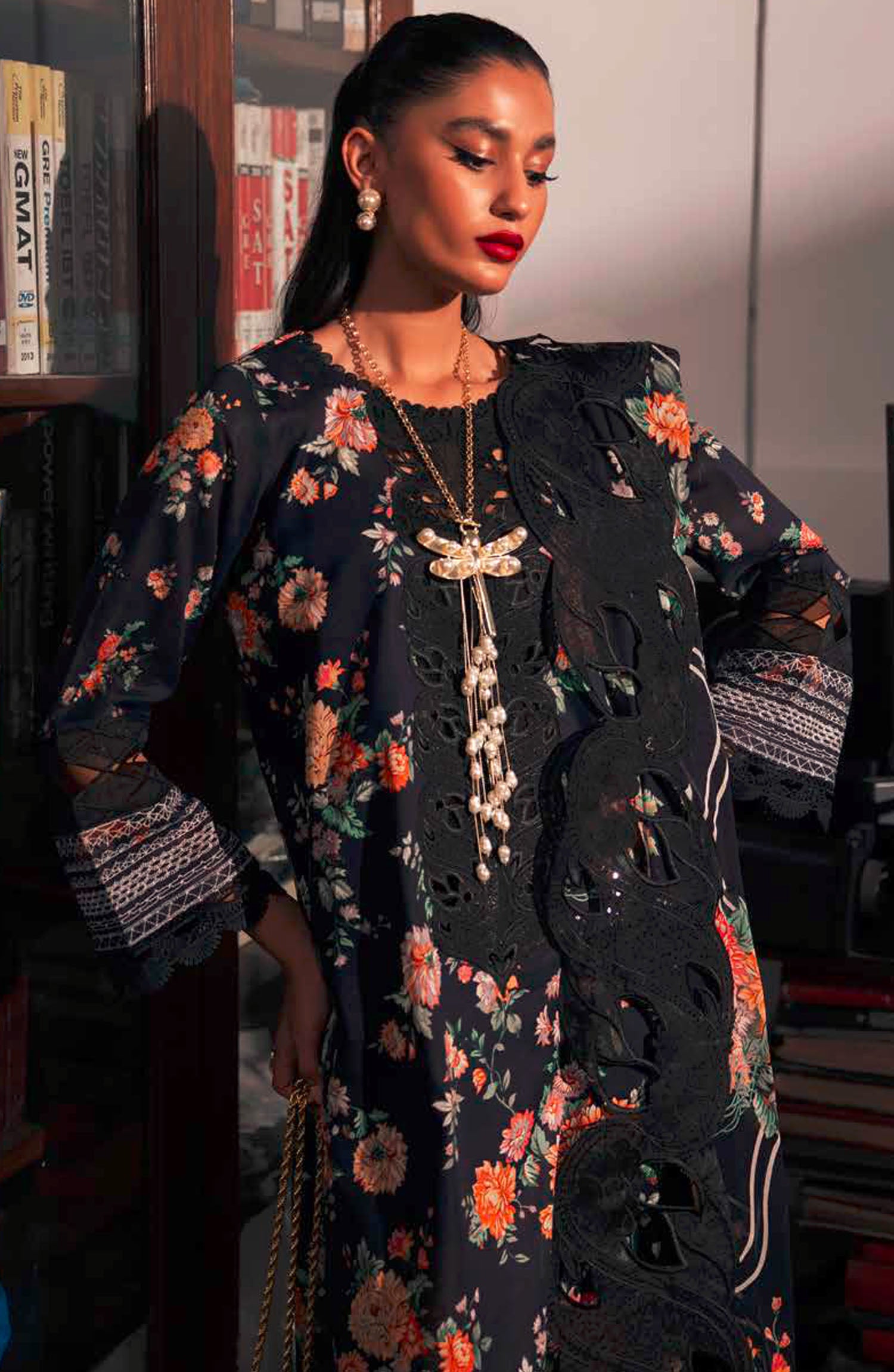 Home Glam Girl by Nureh Embroidered Lawn Unstitched 3 Piece Suit - GL-18 - NU25GG - Black - Summer Collection