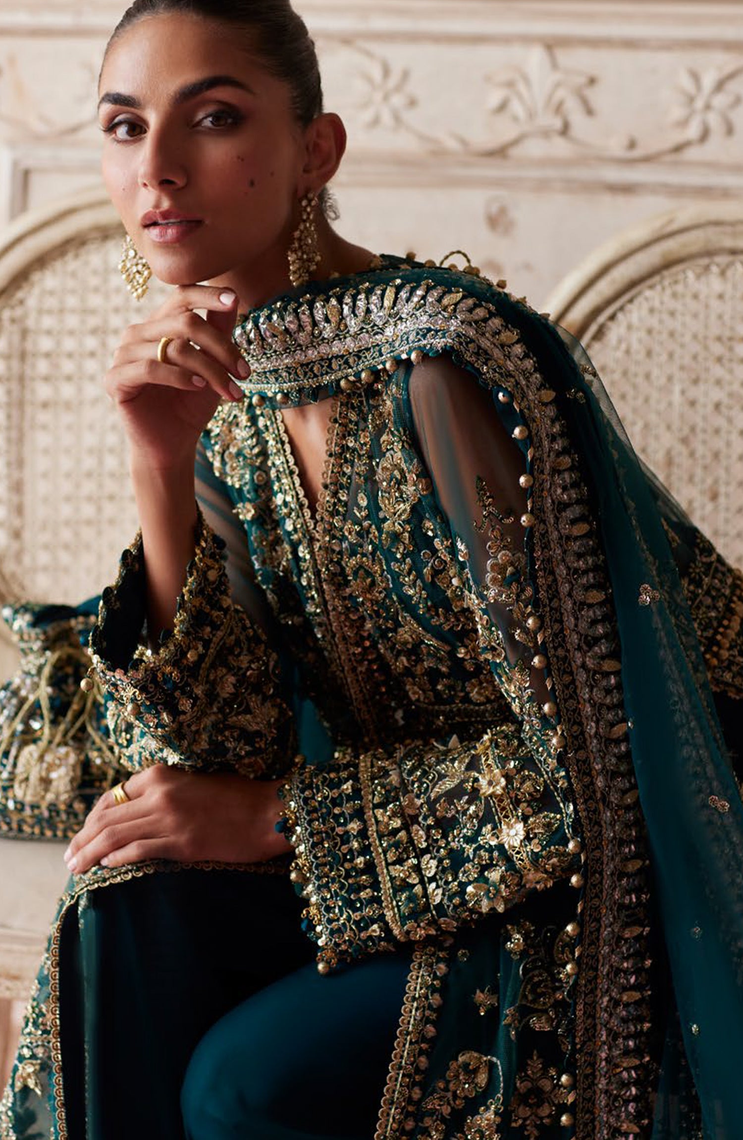 Embellished & Embroidered Front Left & Right Panel 1 (Poly Net) 2 Pieces