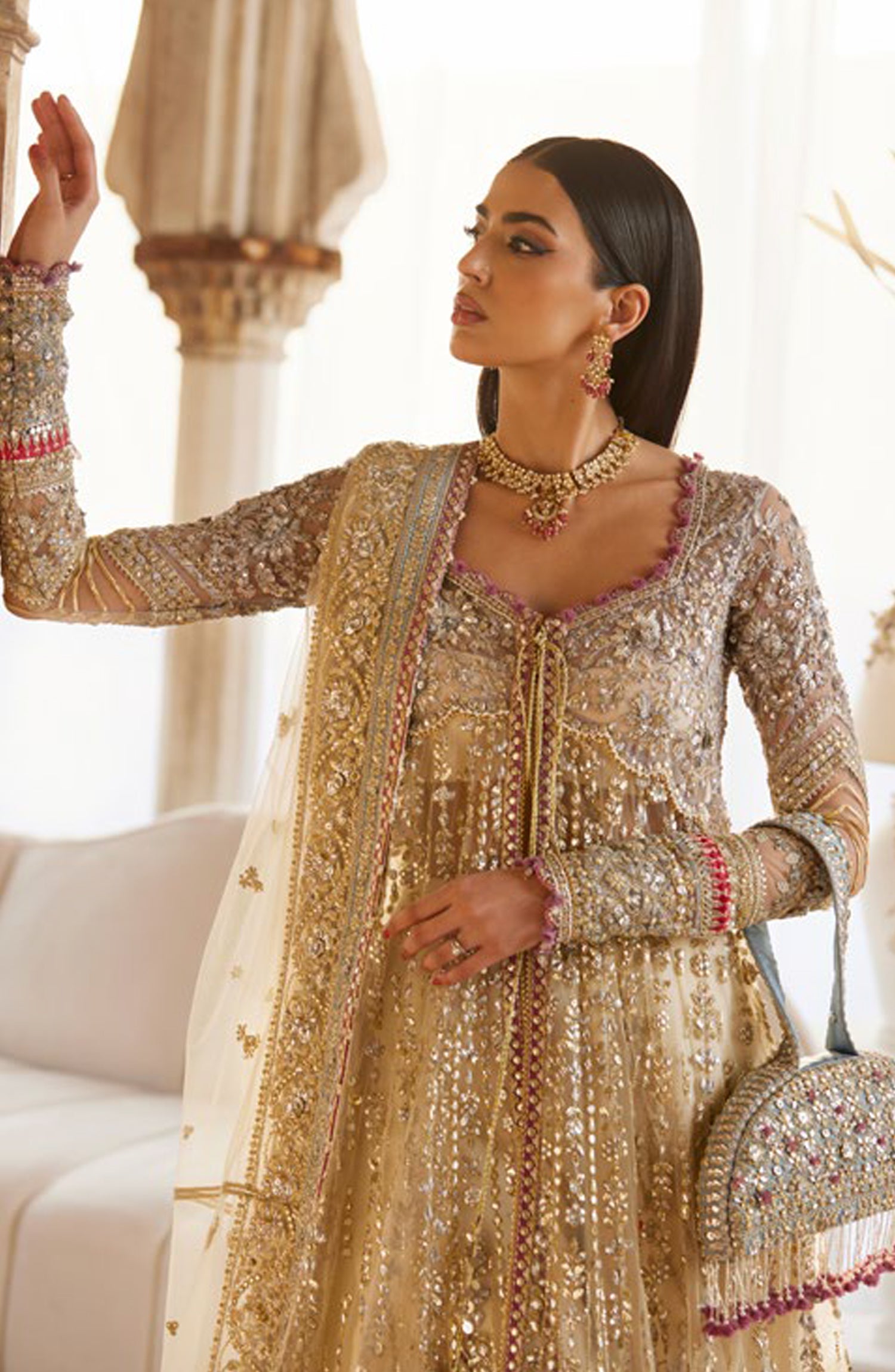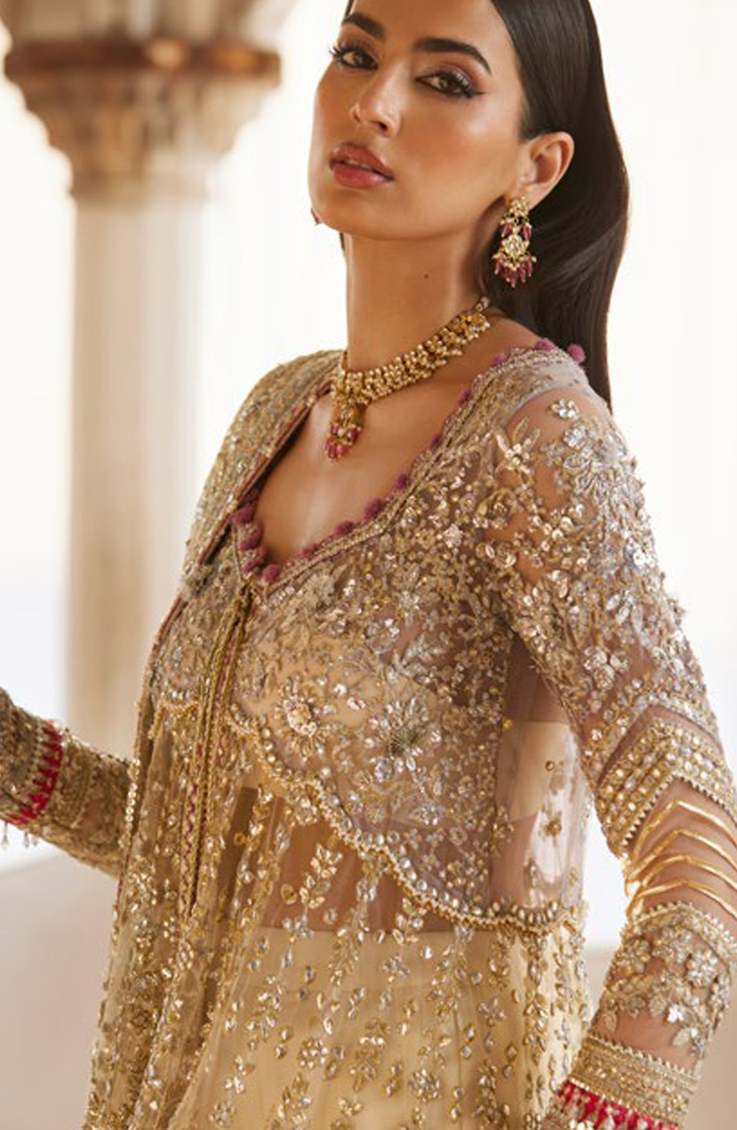 Embellished & Embroidered Front Neck Border (Poly Organza) 1 Meter
