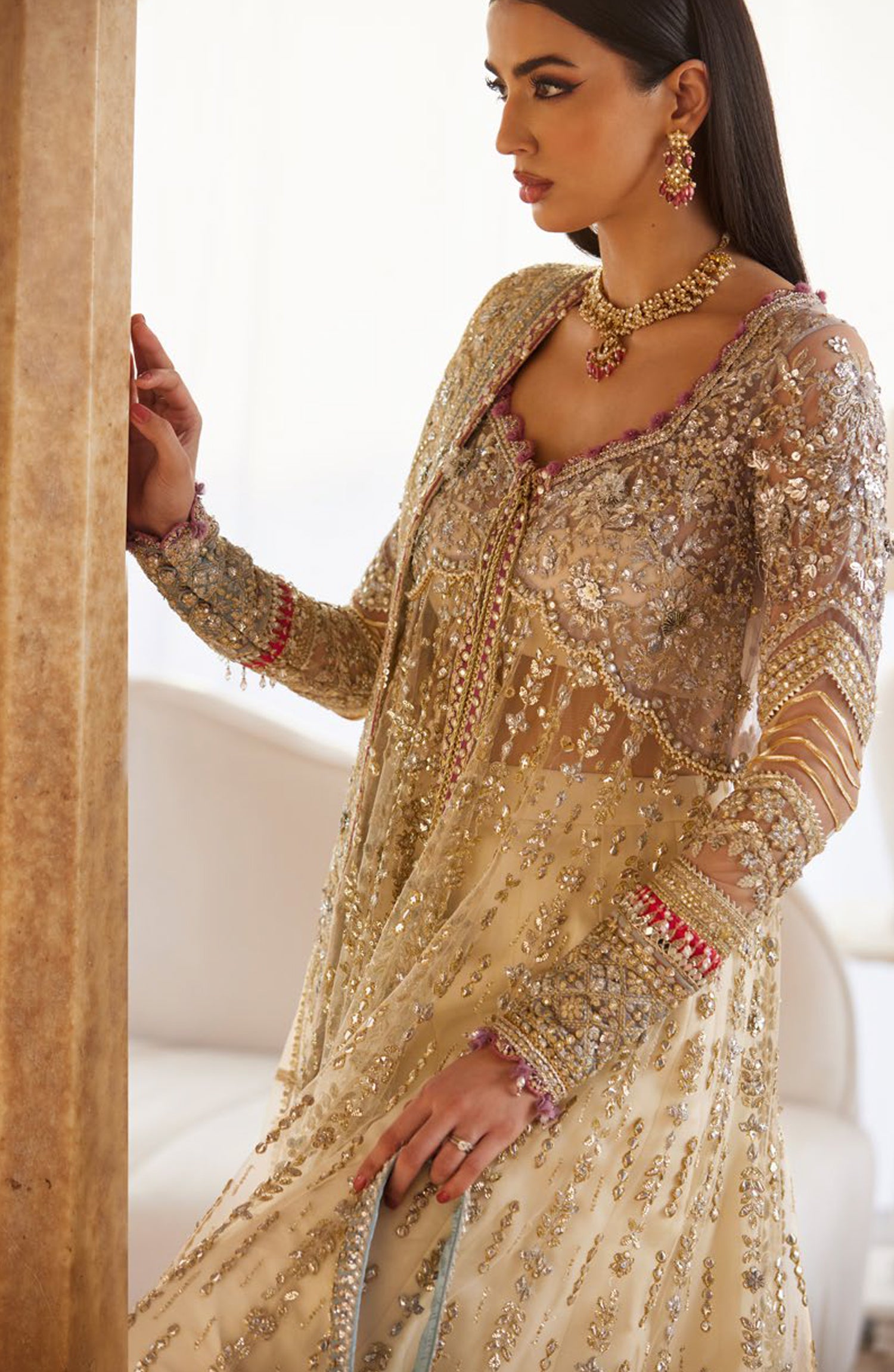 Embellished & Embroidered Front Centre Left & Right Panel (Poly Net) 2 Pieces