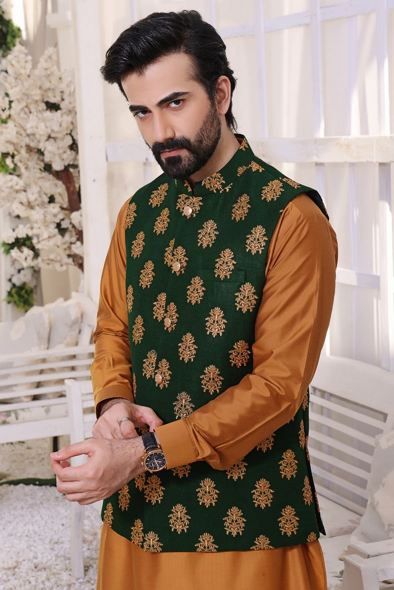 Men's Formal Raw Silk Waistcoat With Sequence Computer Embroidery