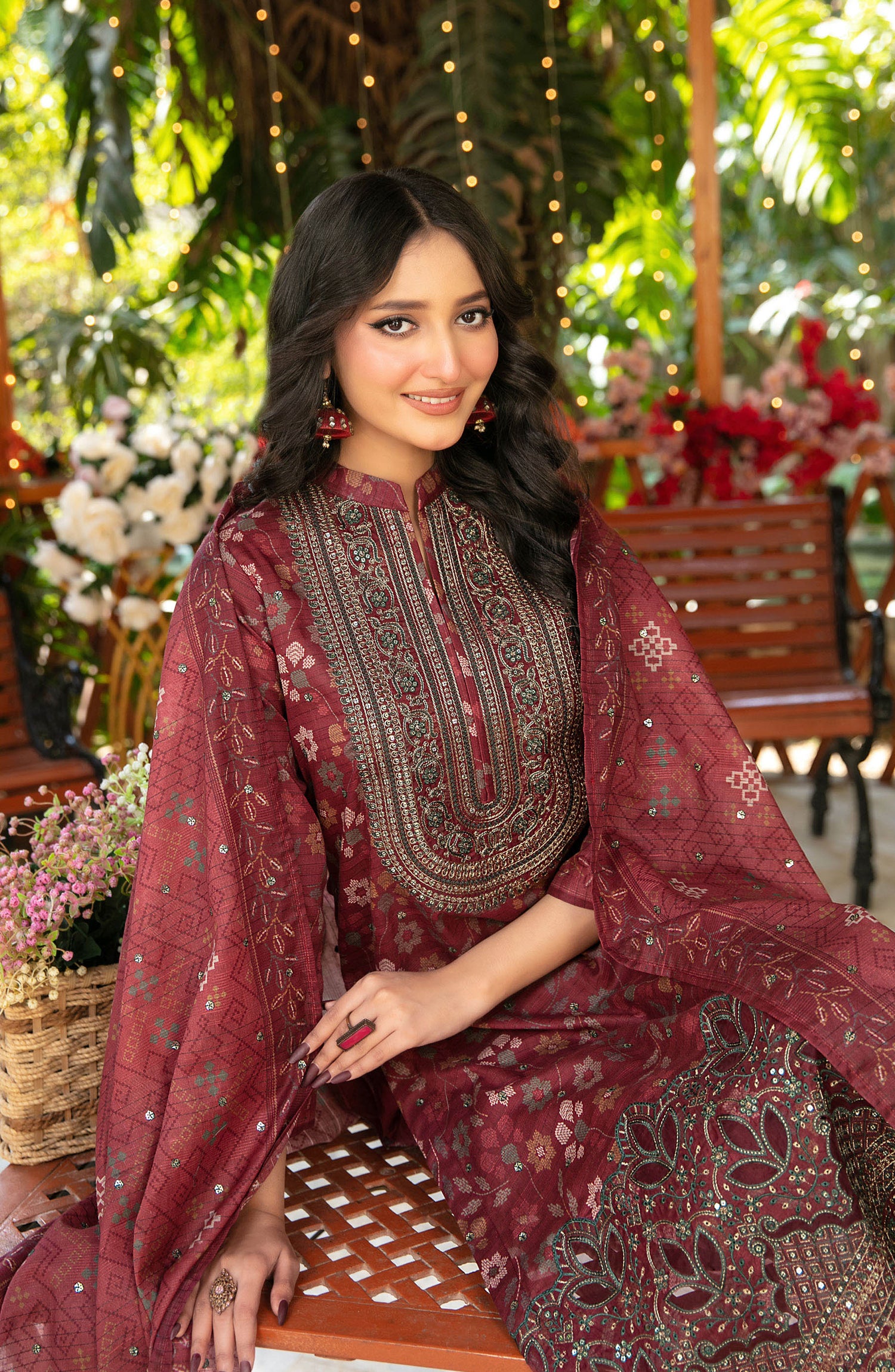 Embroidered Digital Printed Fancy Lawn Dupatta