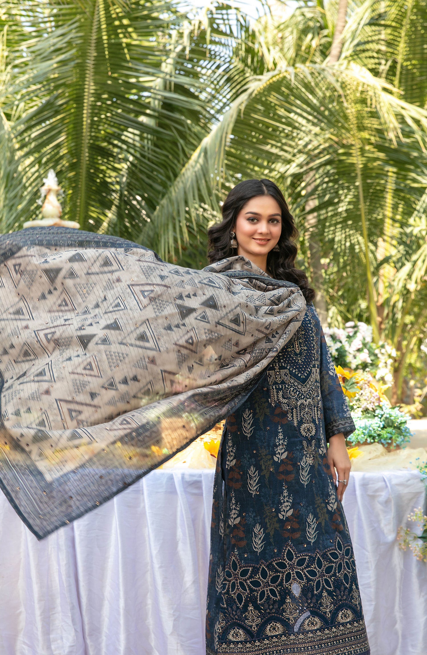 Embroidered Digital Printed Fancy Lawn Dupatta