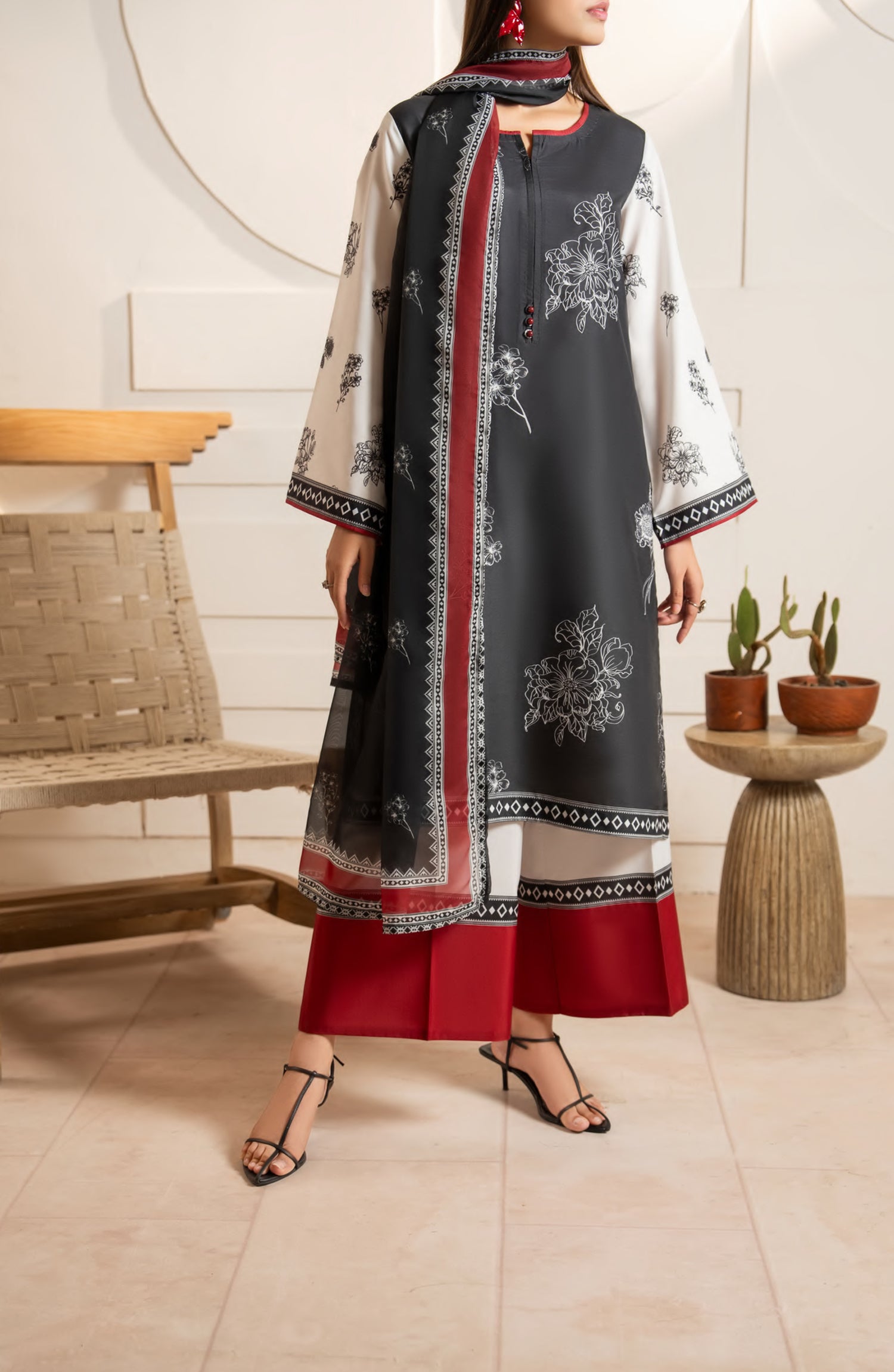 Premium Printed Silk Viscose Stitched 3 Piece Suit
