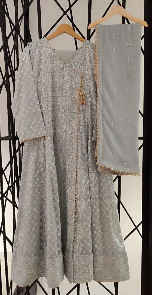 Guzarish by Tawakkal Fabrics Fancy Embroidered Organza Semi-Stitched 3 Piece Suit - D-4445 - TF25GZR - Grey - Festive Collection
