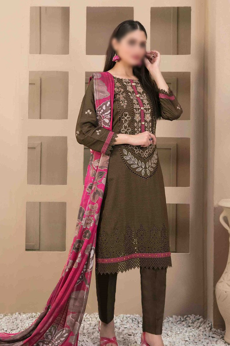 The standard style comes as a long-sleeved kameez with dupatta and trouser/shawlar.