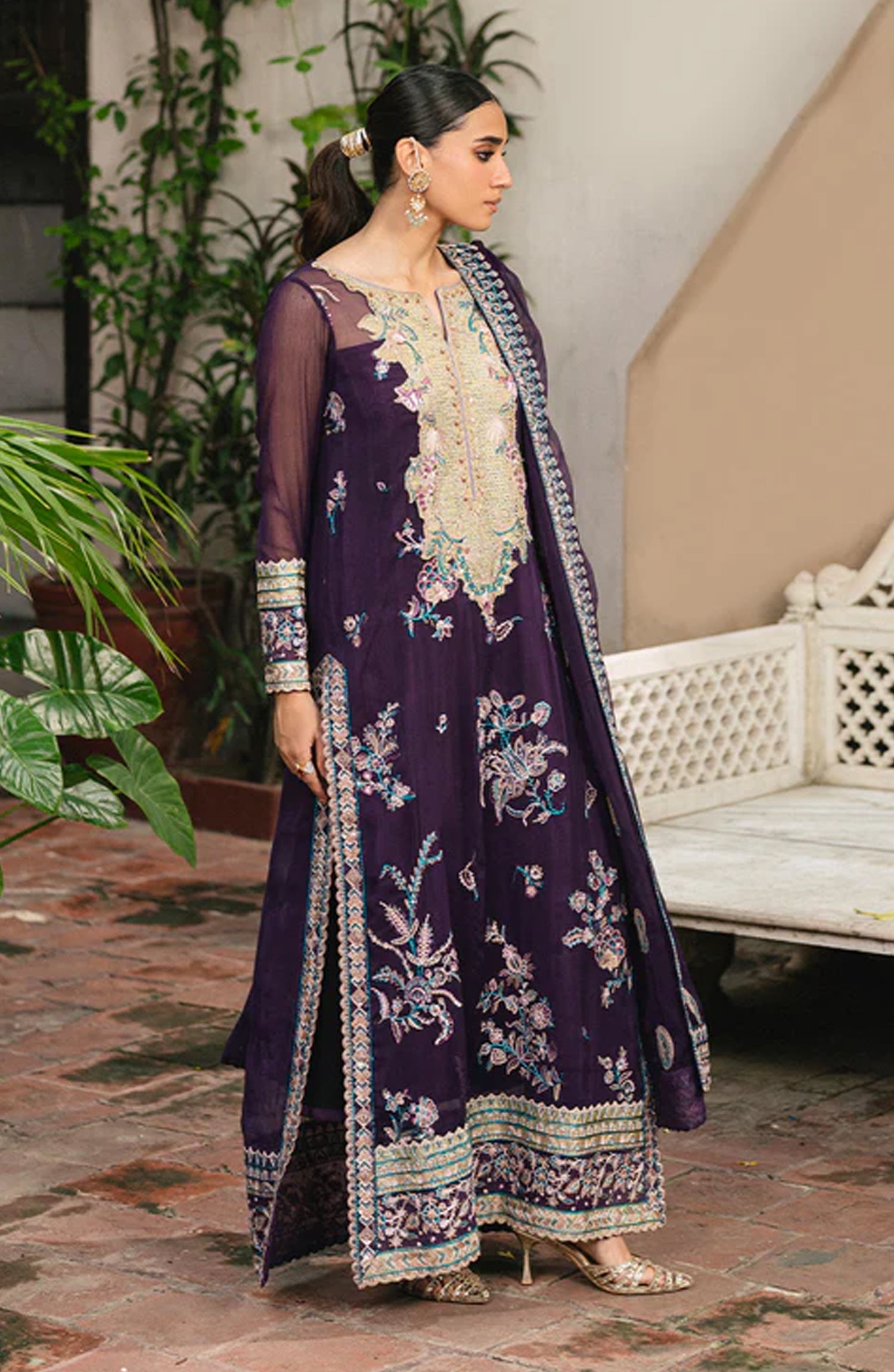 Embroidered Front, Back, Sleeves Patti (Organza) 2.75 Yards