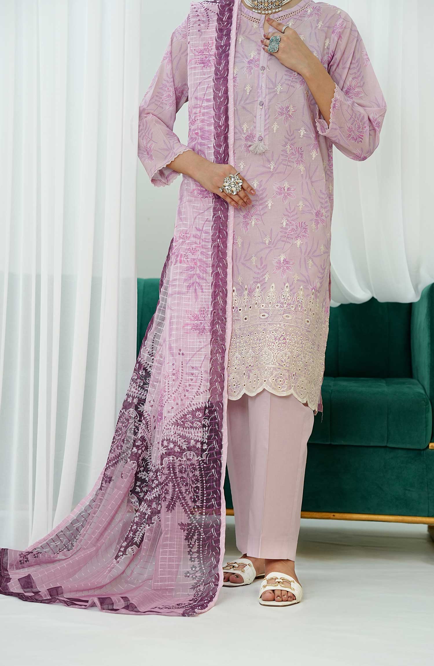 Digital Printed and Boring Embroidered Stitched Lawn Shirt