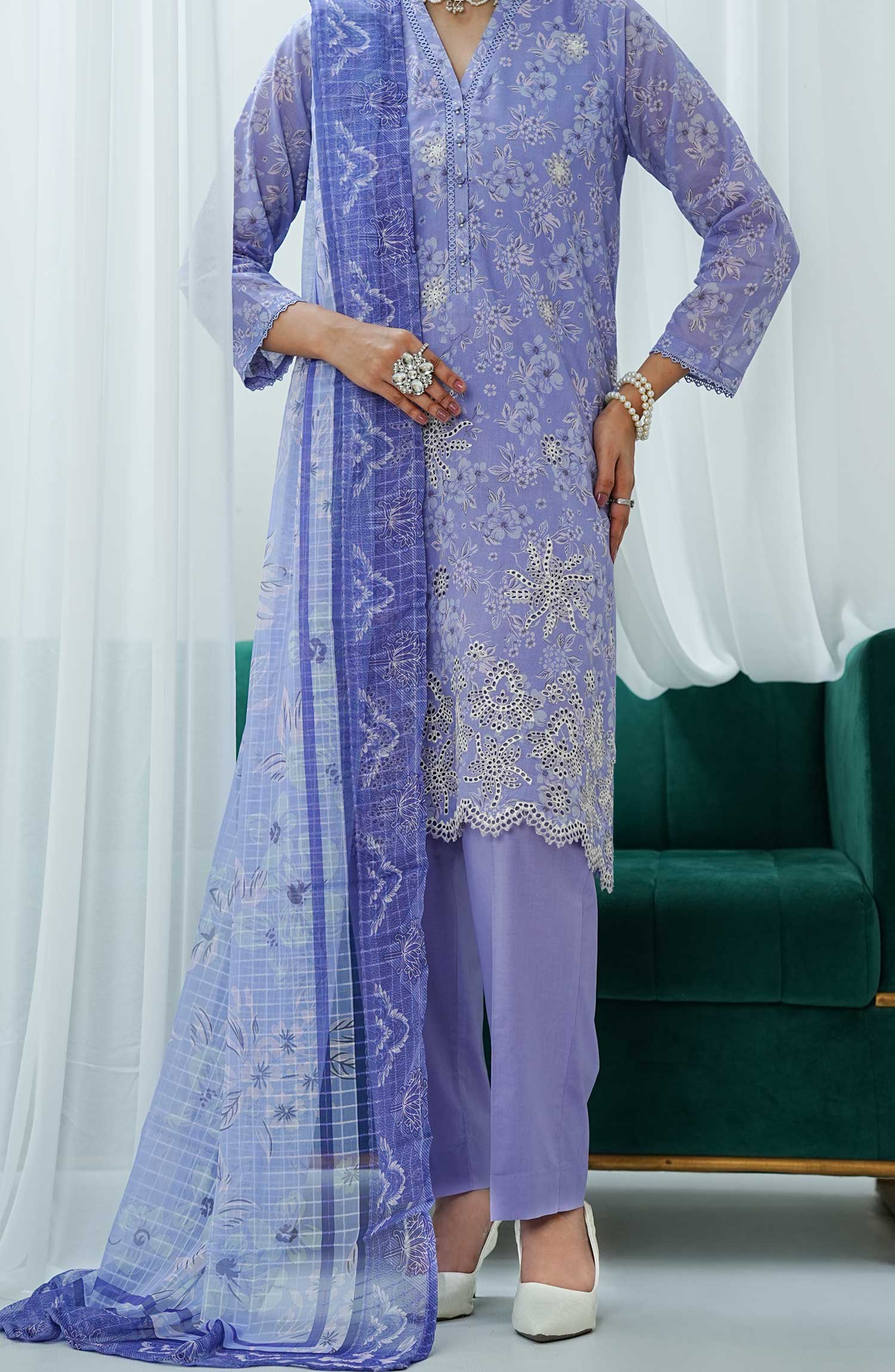Gulraz by Amna Khadija Embroidered Lawn Stitched 3 Piece - GPE 03 - AK25G - Blue - Summer Collection
