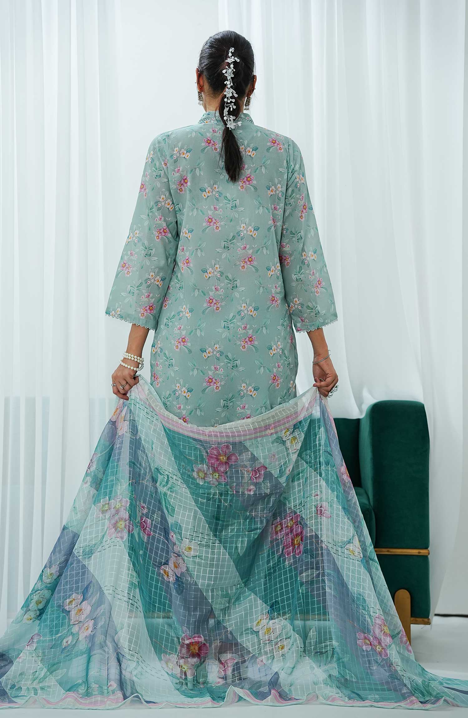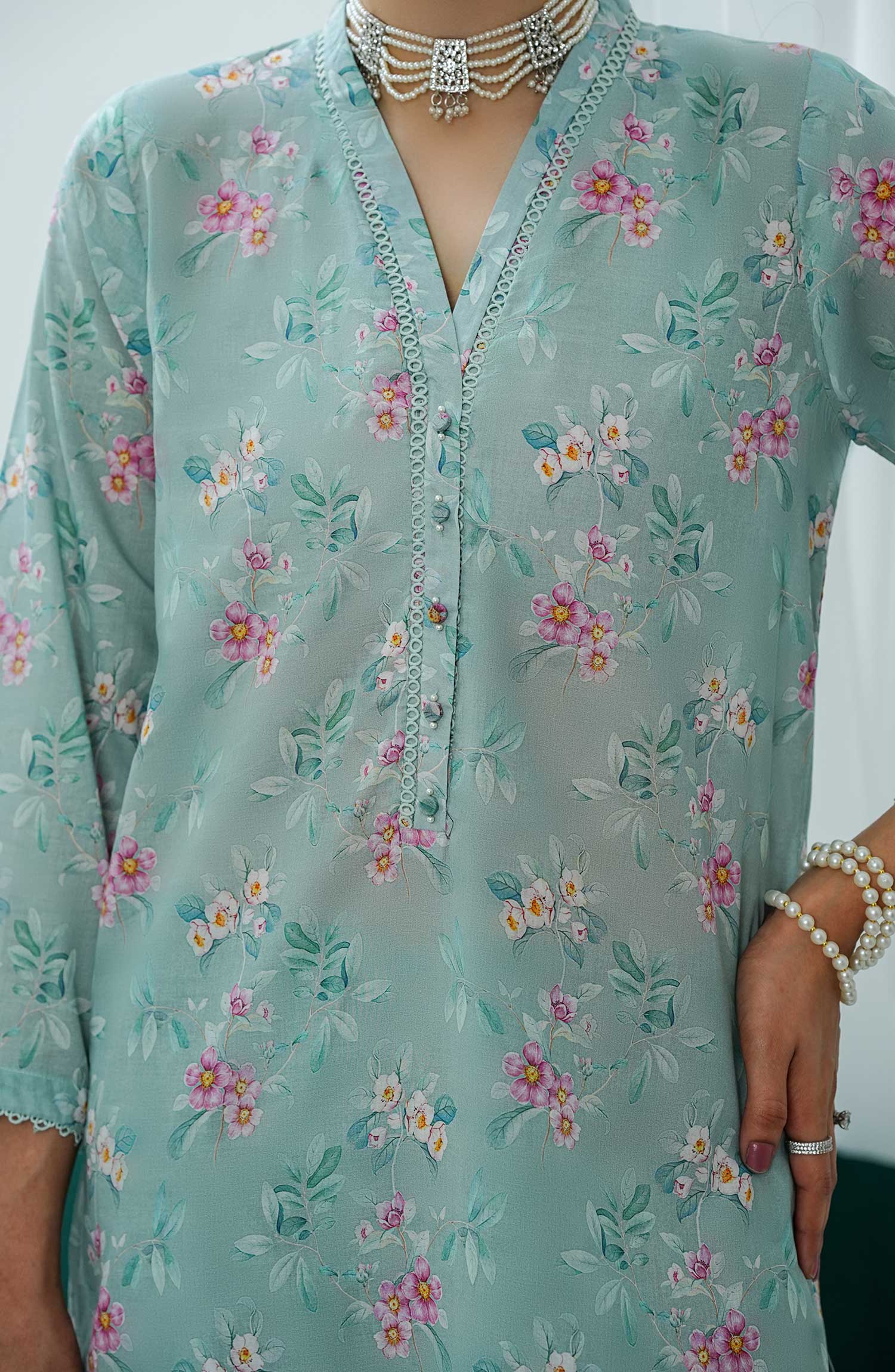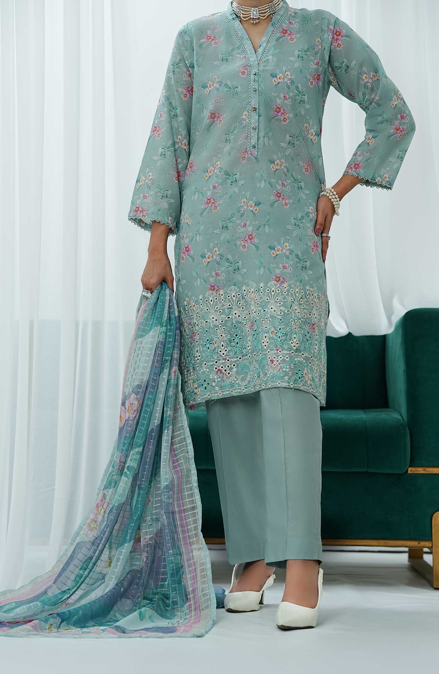 Digital Printed and Boring Embroidered Stitched Lawn Shirt