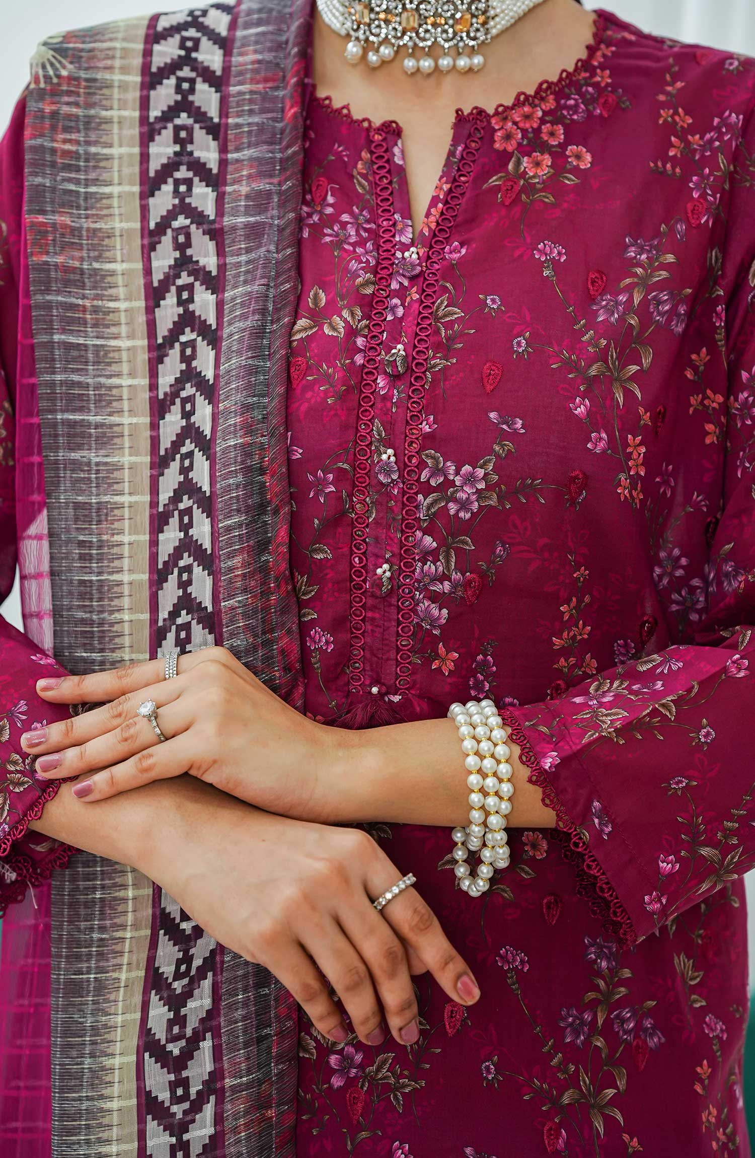 Gulraz by Amna Khadija Embroidered Lawn Stitched 3 Piece - GPE 08 - AK25G - Purple - Summer Collection