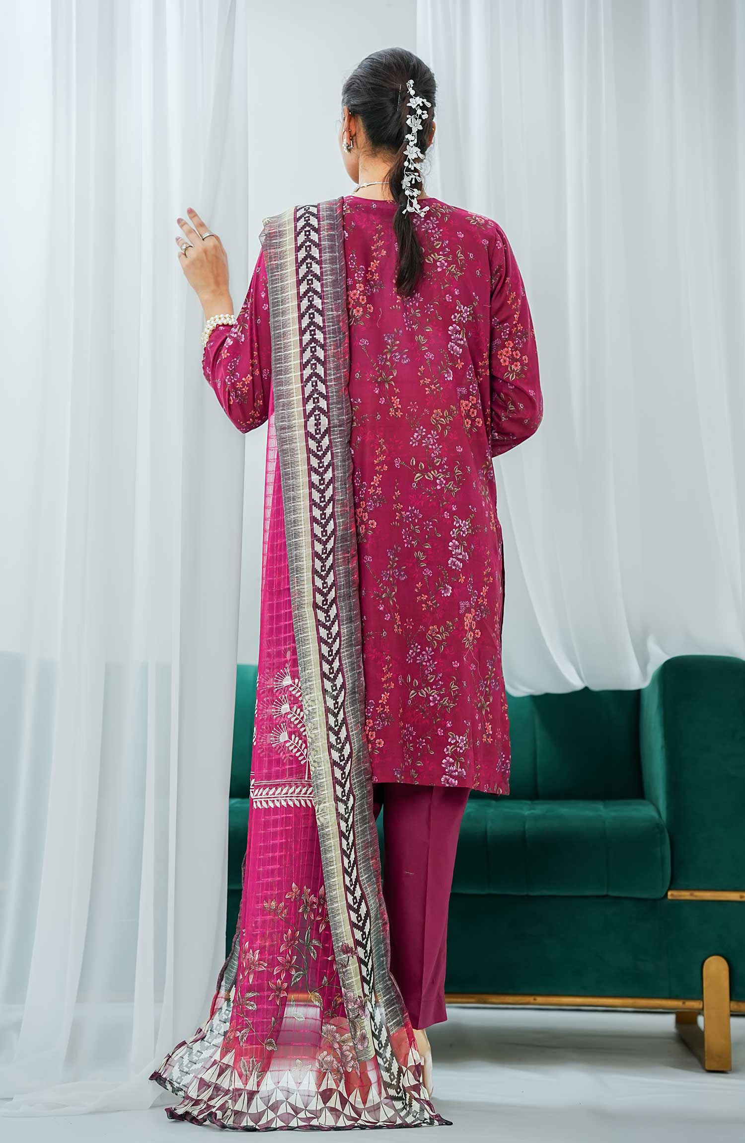 Modest Embroidered Khaddar Stitched 3 Piece Suit - 10040-Pnk - MOD25WNT - Pink - Winter Collection