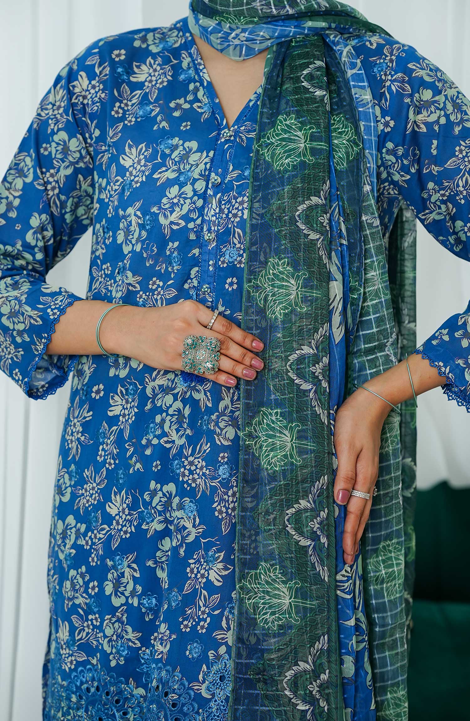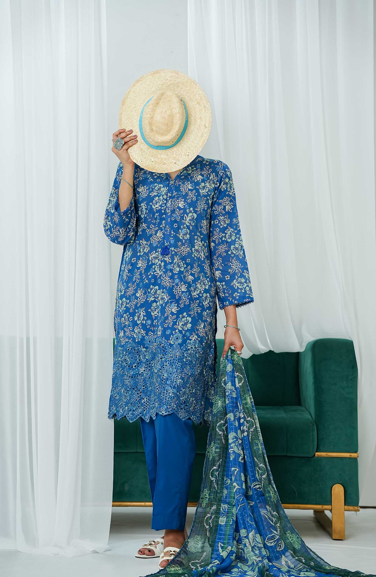 Gulraz by Amna Khadija Embroidered Lawn Stitched 3 Piece - GPE 09 - AK25G - Blue - Summer Collection