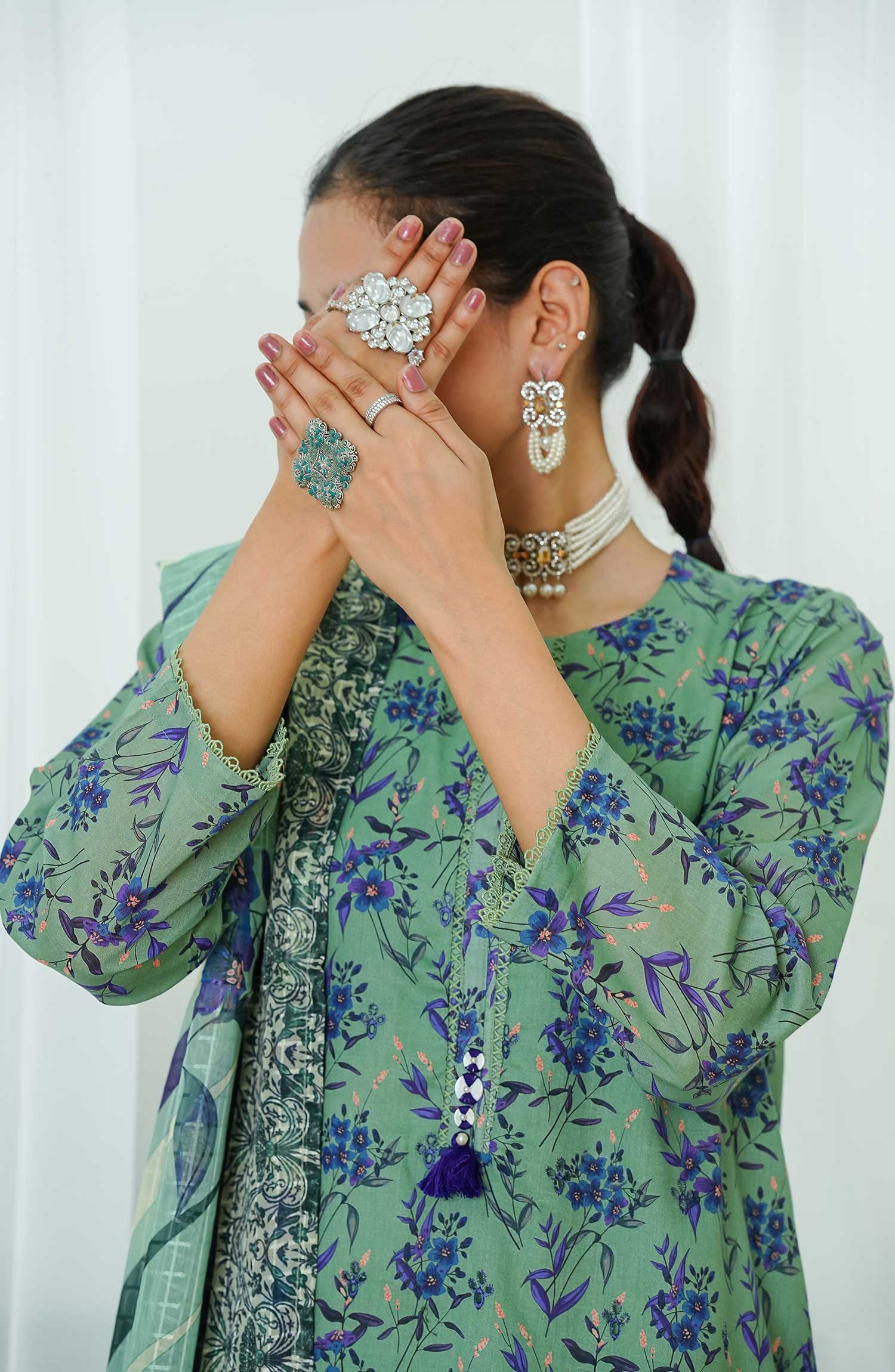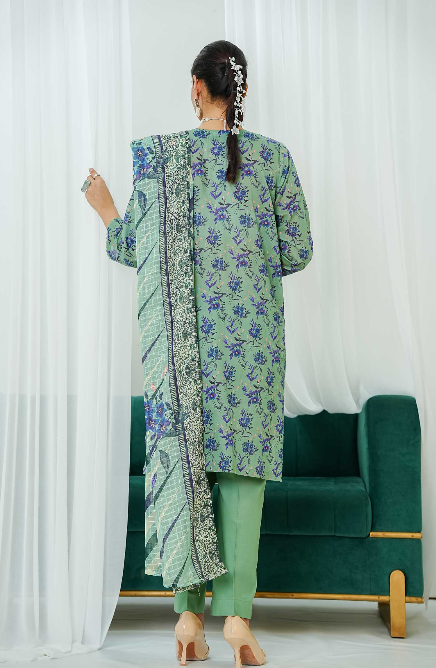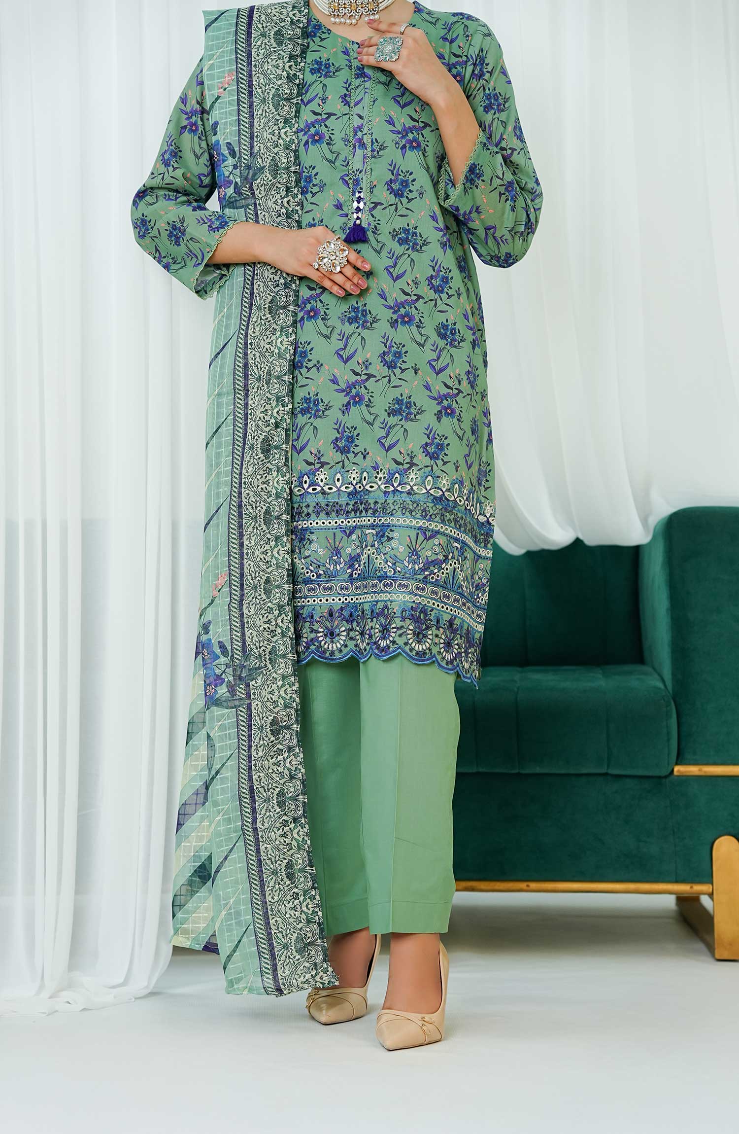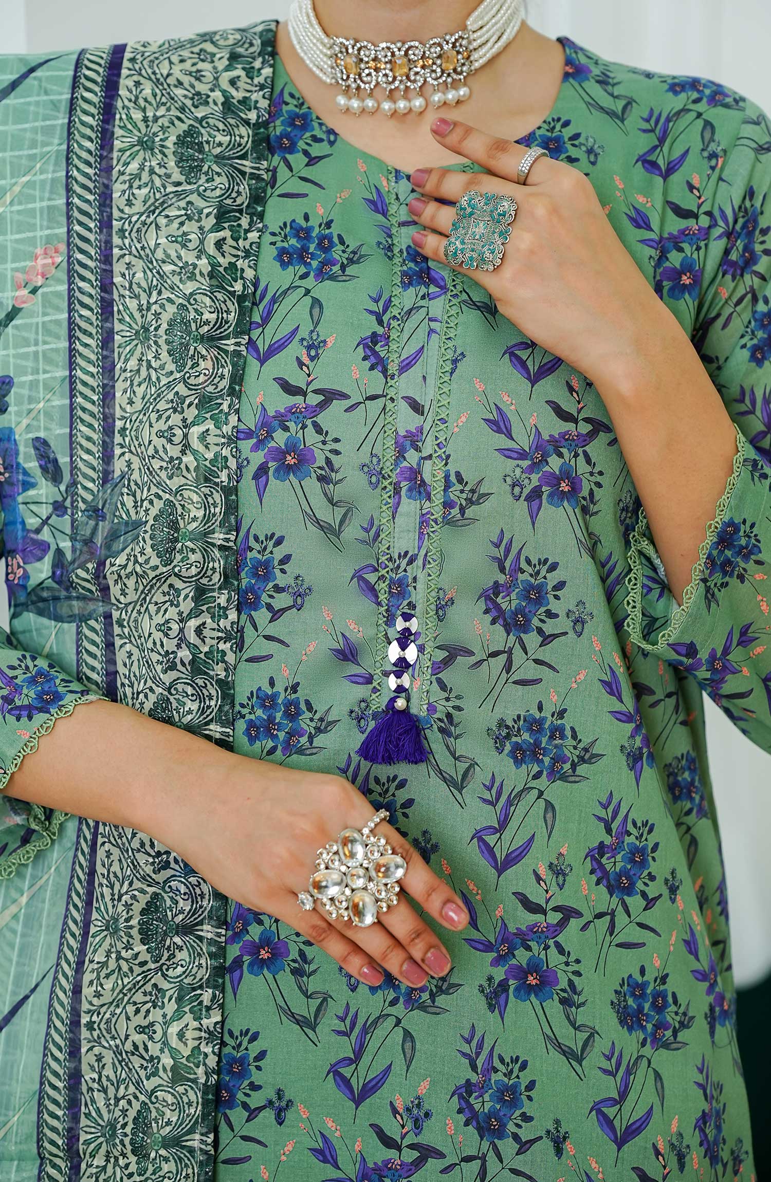Digital Printed and Boring Embroidered Stitched Lawn Shirt