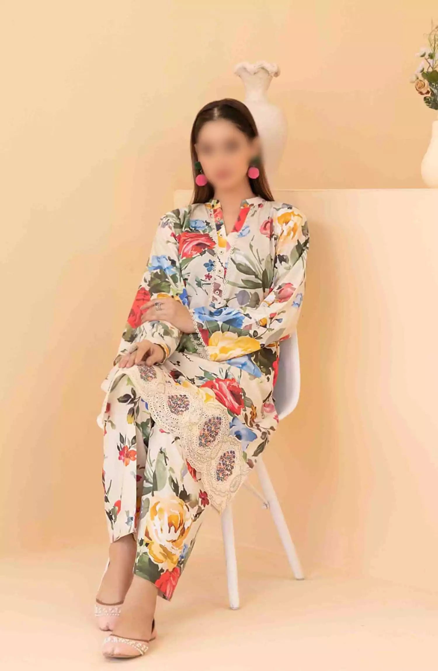 Gulseren - Stitched Embroidered Digital Printed 2pcs Collection has been styled in the image for photography and illustrative purposes.