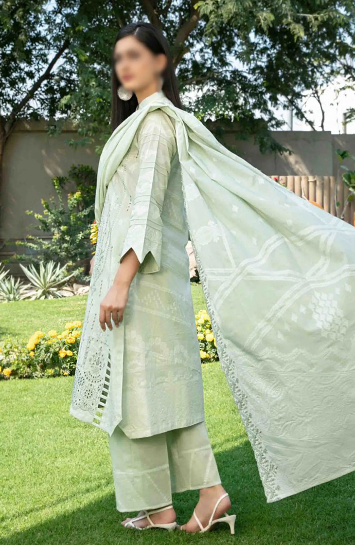 Gulshanara - Embroidered Lawn Banarsi Collection has been styled in the image for photography and illustrative purposes.