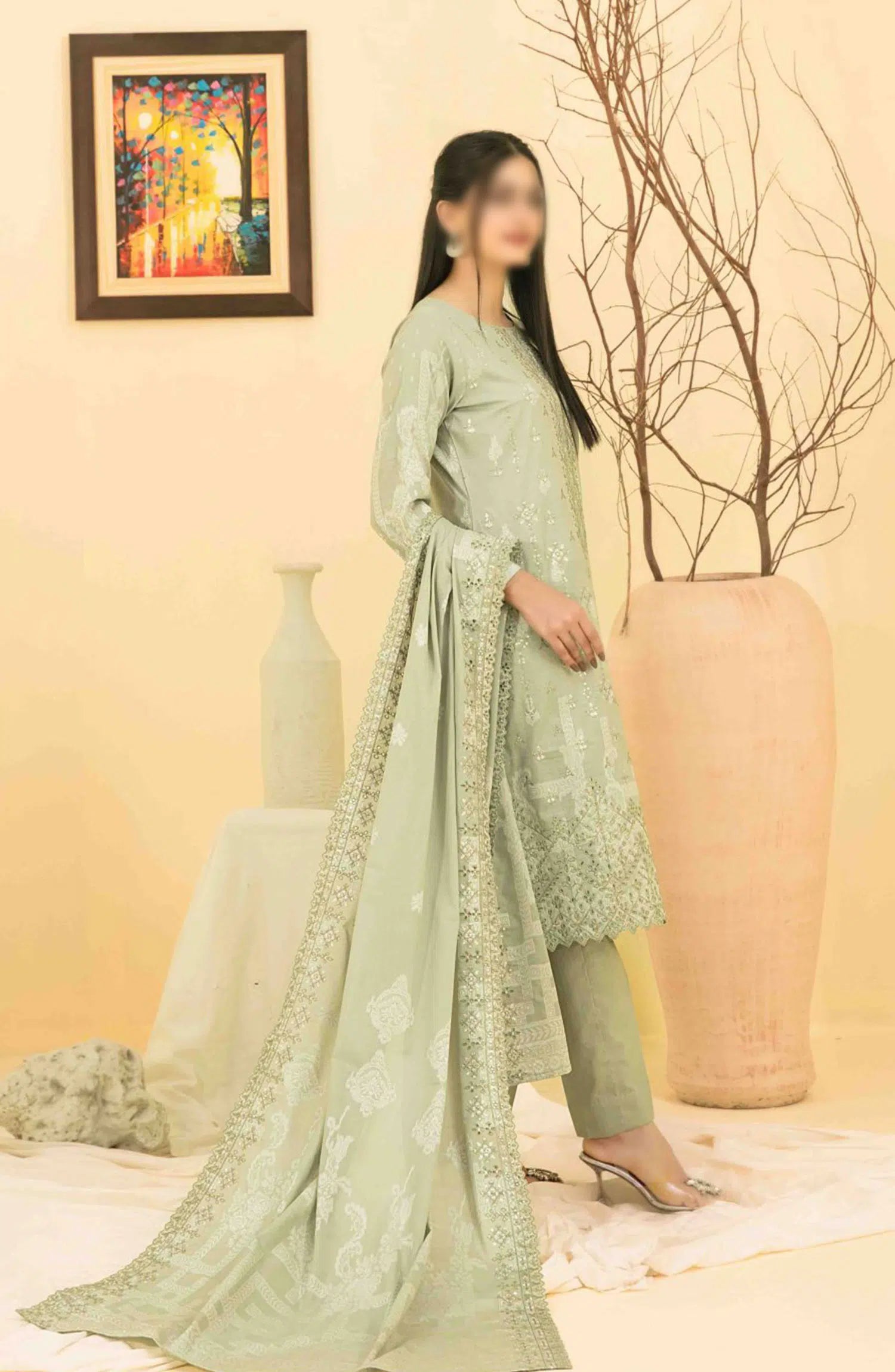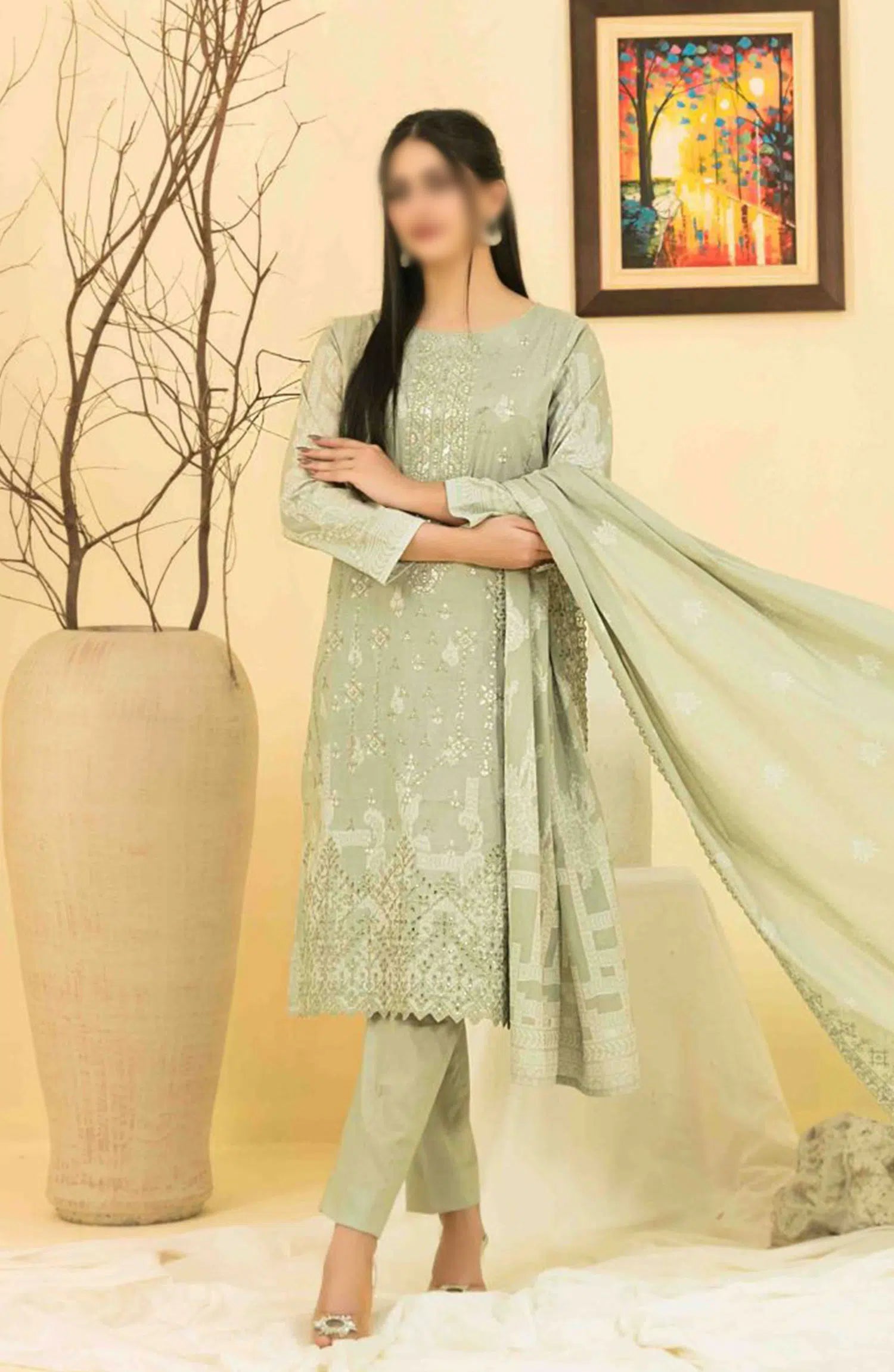 Gulshanara Vol IV - Embroidered Lawn Banarsi Collection has been styled in the image for photography and illustrative purposes.