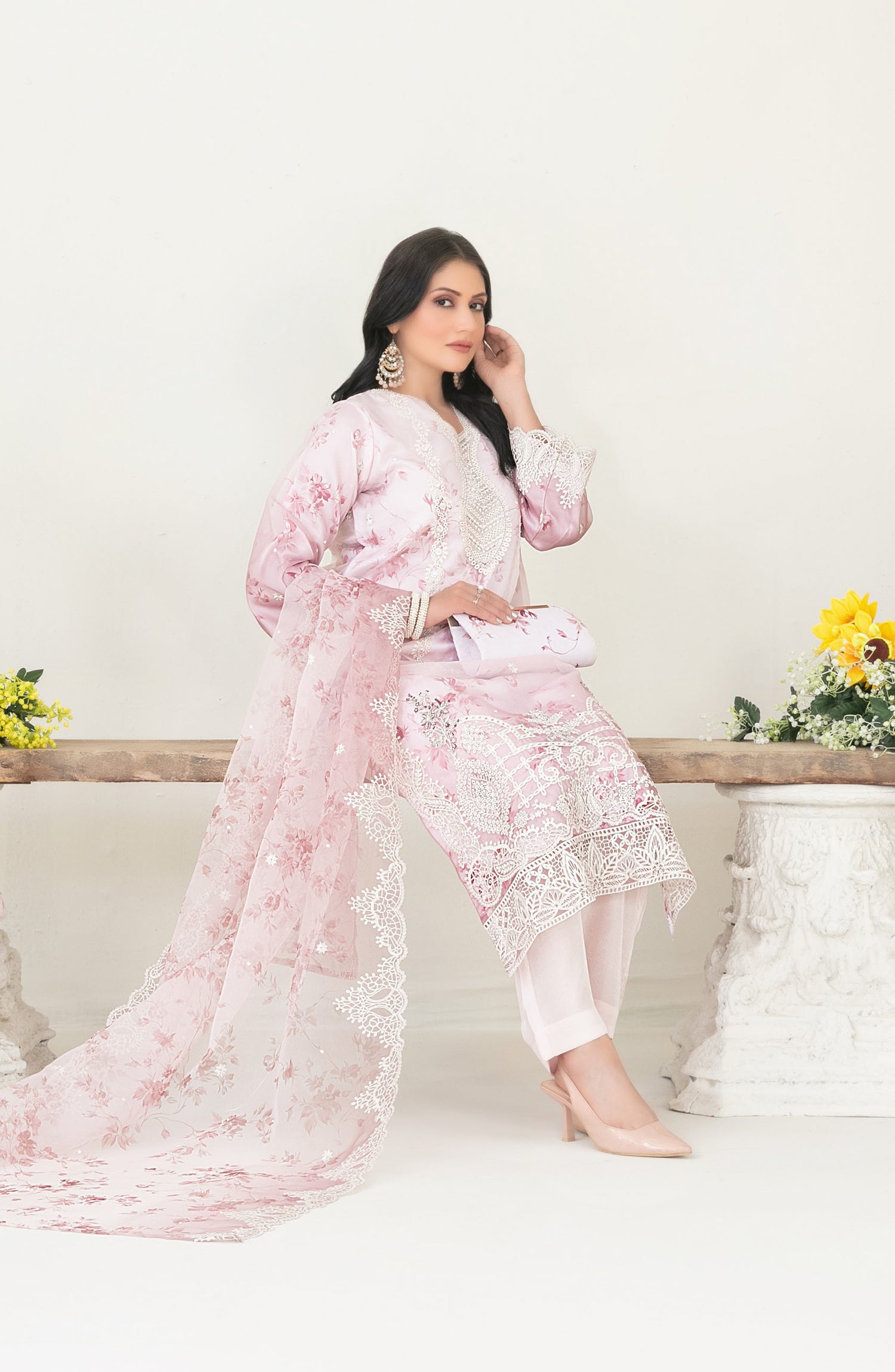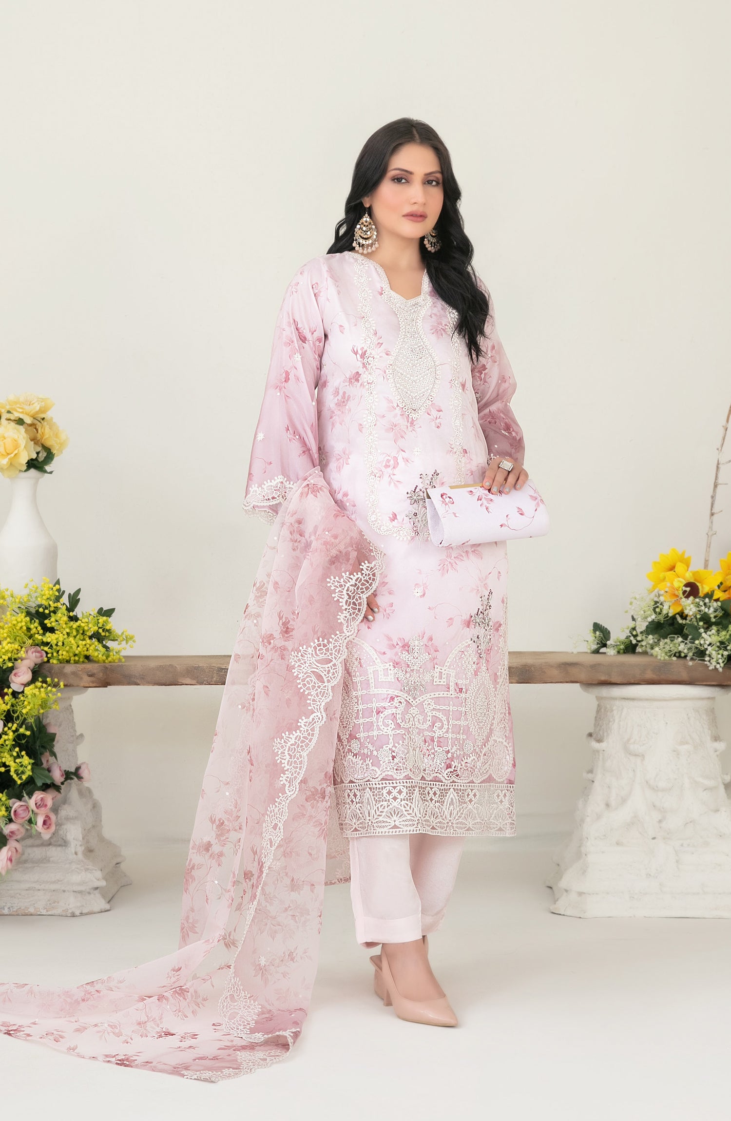 Stitched Fancy Exclusive Embroidered Organza Shirt with Embellishments & Printed Silk Inner